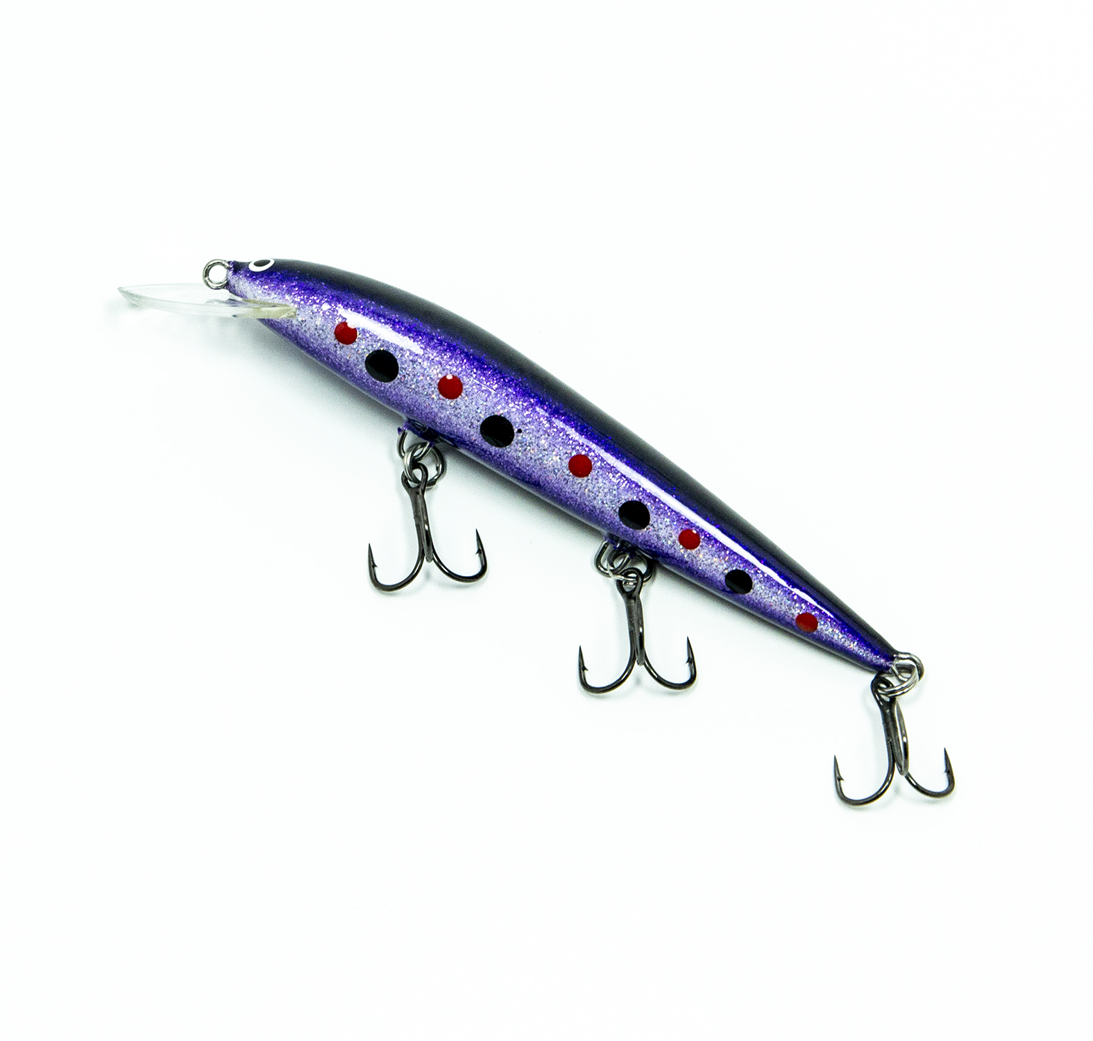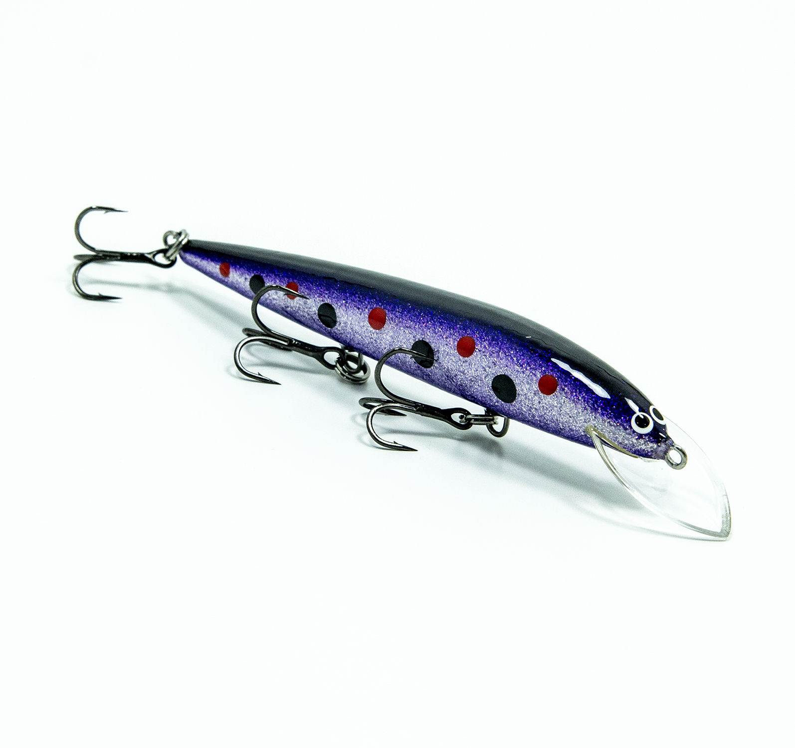 У этого воблера длинное продолговатое тело с глубоко посаженной лопастью. Благодаря лопатке специальной формы воблер имеет необычную привлекательную для хищников игру (игра мелкочастотная, воблер как бы «дрожит», проплывая мимо) и быстро погружается на рабочую глубину проводки (работает он в среднем горизонте — от двух до трех метров в зависимости от отпуска — и в большинстве случаев это именно то заглубление, где хищника можно поймать почти всегда).