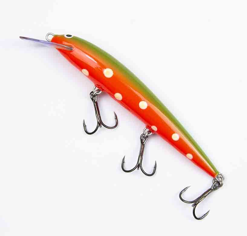 У этого воблера длинное продолговатое тело с глубоко посаженной лопастью. Благодаря лопатке специальной формы воблер имеет необычную привлекательную для хищников игру (игра мелкочастотная, воблер как бы «дрожит», проплывая мимо) и быстро погружается на рабочую глубину проводки (работает он в среднем горизонте — от двух до трех метров в зависимости от отпуска — и в большинстве случаев это именно то заглубление, где хищника можно поймать почти всегда).