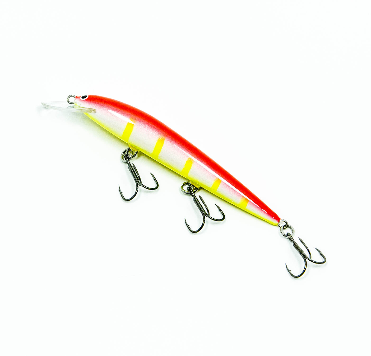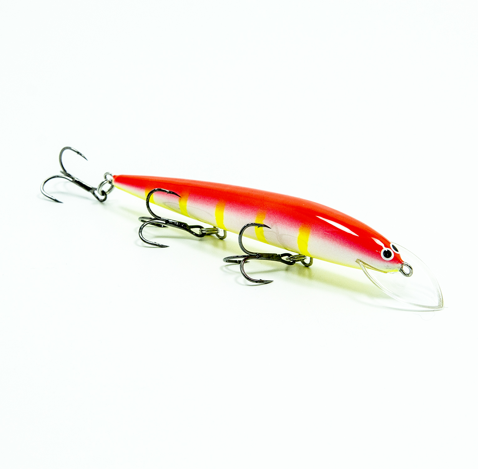 У этого воблера длинное продолговатое тело с глубоко посаженной лопастью. Благодаря лопатке специальной формы воблер имеет необычную привлекательную для хищников игру (игра мелкочастотная, воблер как бы «дрожит», проплывая мимо) и быстро погружается на рабочую глубину проводки (работает он в среднем горизонте — от двух до трех метров в зависимости от отпуска — и в большинстве случаев это именно то заглубление, где хищника можно поймать почти всегда).