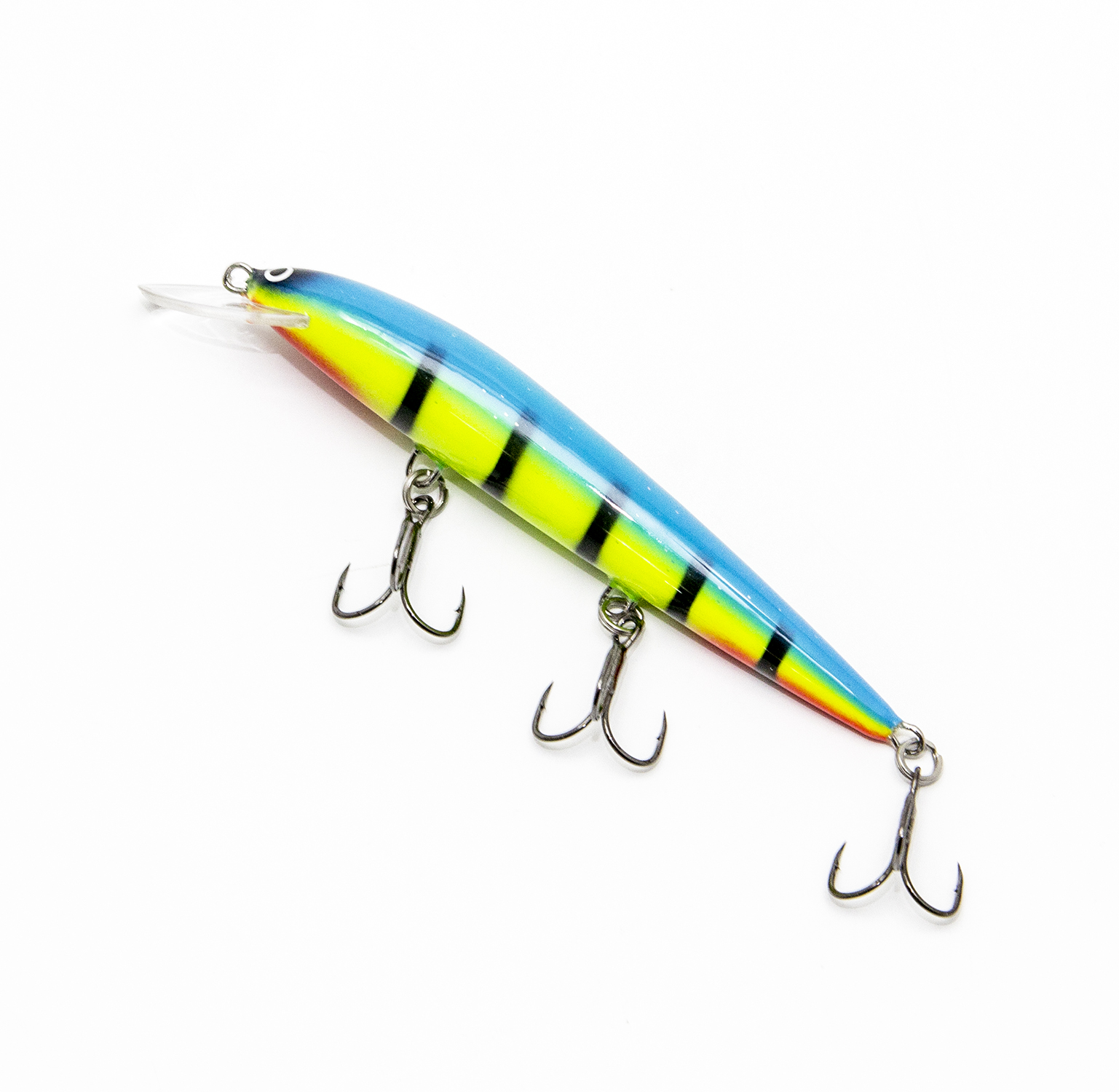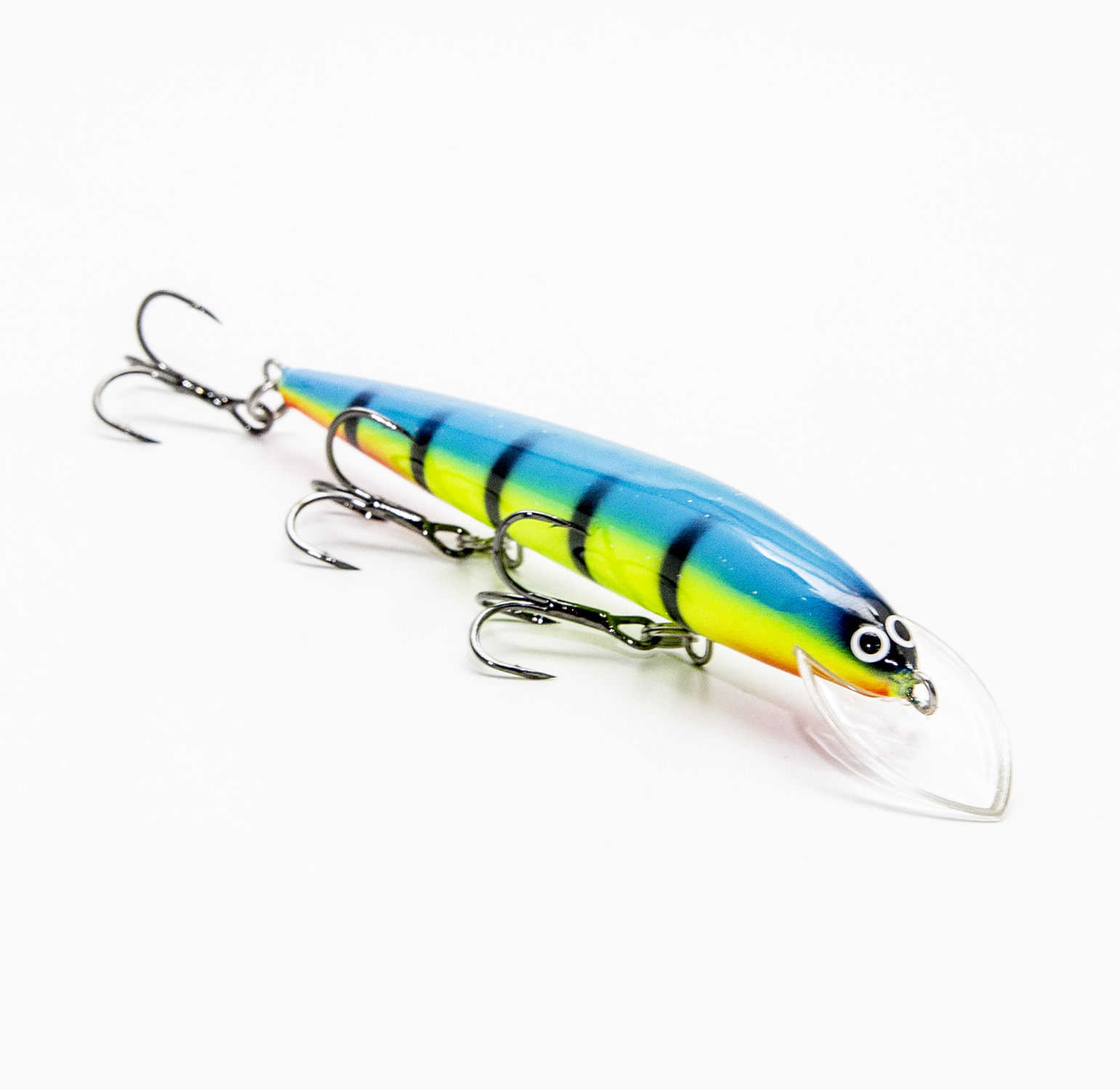 У этого воблера длинное продолговатое тело с глубоко посаженной лопастью. Благодаря лопатке специальной формы воблер имеет необычную привлекательную для хищников игру (игра мелкочастотная, воблер как бы «дрожит», проплывая мимо) и быстро погружается на рабочую глубину проводки (работает он в среднем горизонте — от двух до трех метров в зависимости от отпуска — и в большинстве случаев это именно то заглубление, где хищника можно поймать почти всегда).