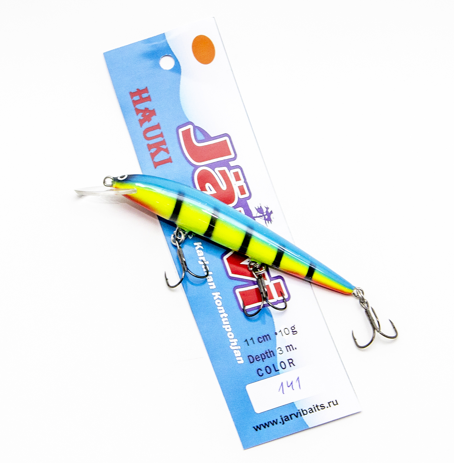 Перед вами новая модель воблера Jarvi (Ярви) (г. Кондопога, республика Карелия) – Jarvi Hauki. Да, модель новая, но форма воблера хорошо знакома многим рыболовам – это точная копия финского воблера Jarmo Karikko 11 см.