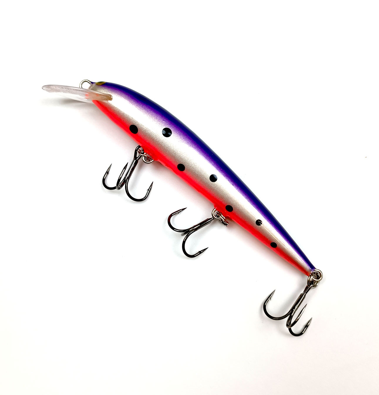 У этого воблера длинное продолговатое тело с глубоко посаженной лопастью. Благодаря лопатке специальной формы воблер имеет необычную привлекательную для хищников игру (игра мелкочастотная, воблер как бы «дрожит», проплывая мимо) и быстро погружается на рабочую глубину проводки (работает он в среднем горизонте — от двух до трех метров в зависимости от отпуска — и в большинстве случаев это именно то заглубление, где хищника можно поймать почти всегда).