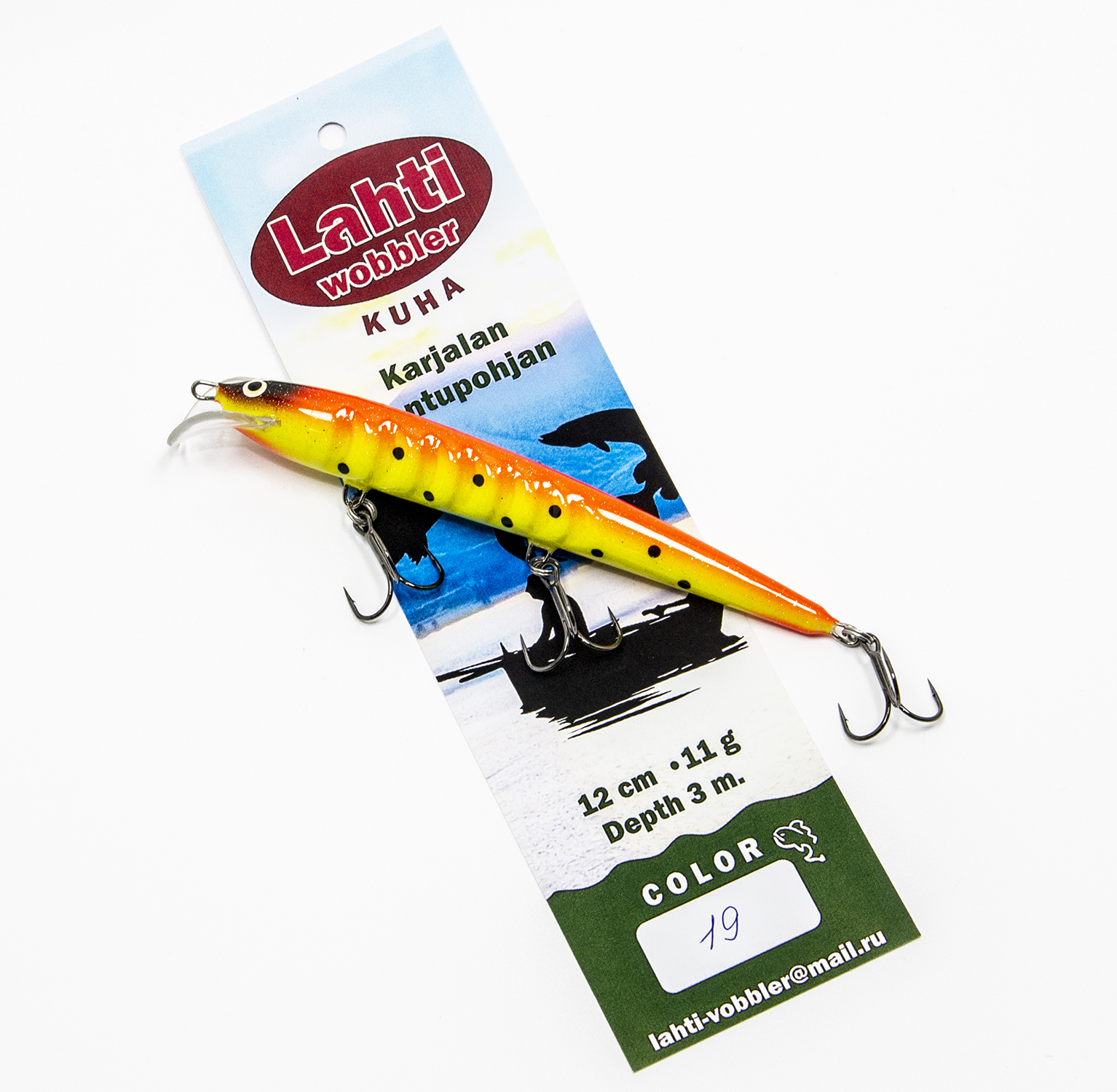ТТХ Lahti Kuha: длина 12 см., вес: 11 гр., заглубление до 3 метров.