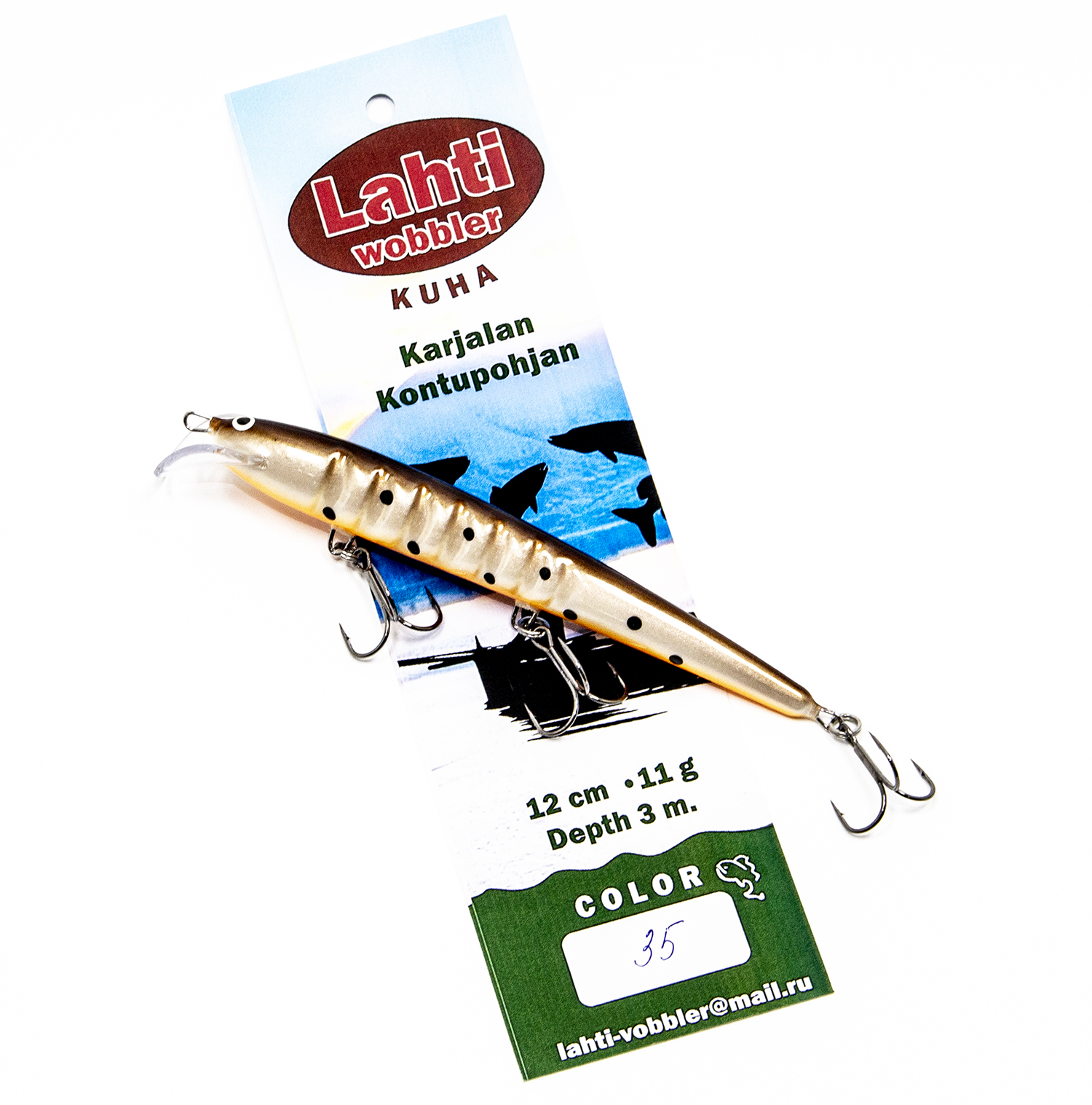 ТТХ Lahti Kuha: длина 12 см., вес: 11 гр., заглубление до 3 метров.