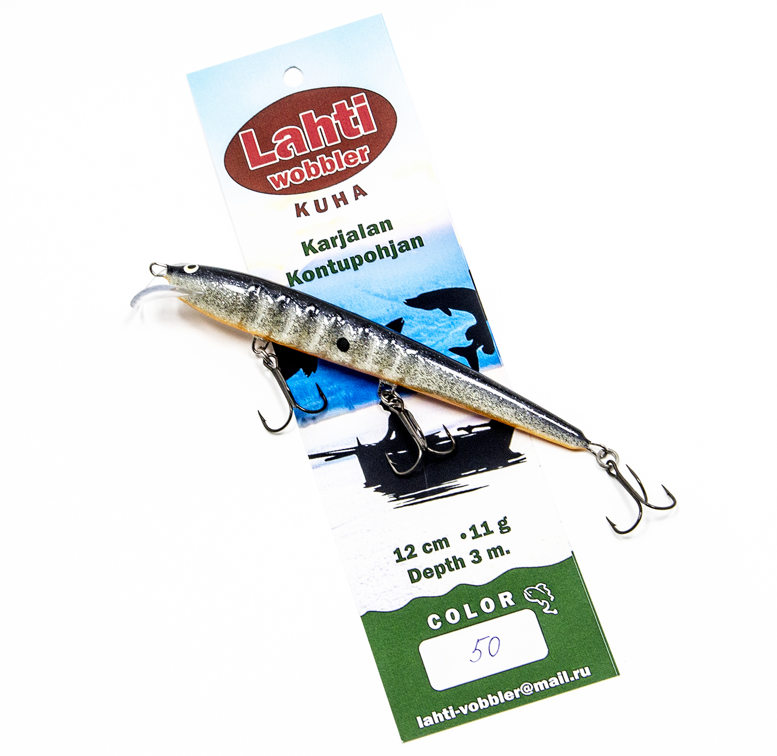 ТТХ Lahti Kuha: длина 12 см., вес: 11 гр., заглубление до 3 метров.