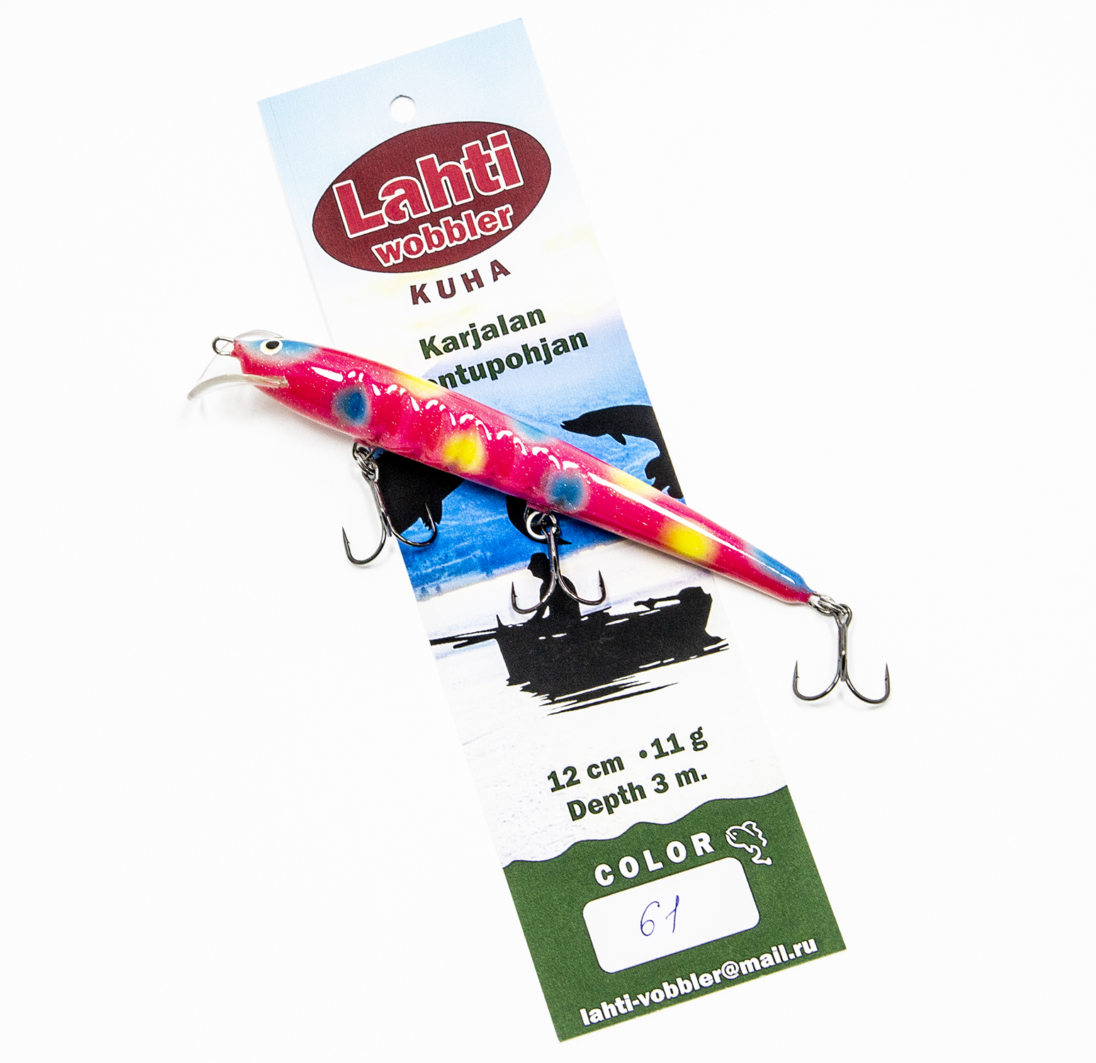 ТТХ Lahti Kuha: длина 12 см., вес: 11 гр., заглубление до 3 метров.