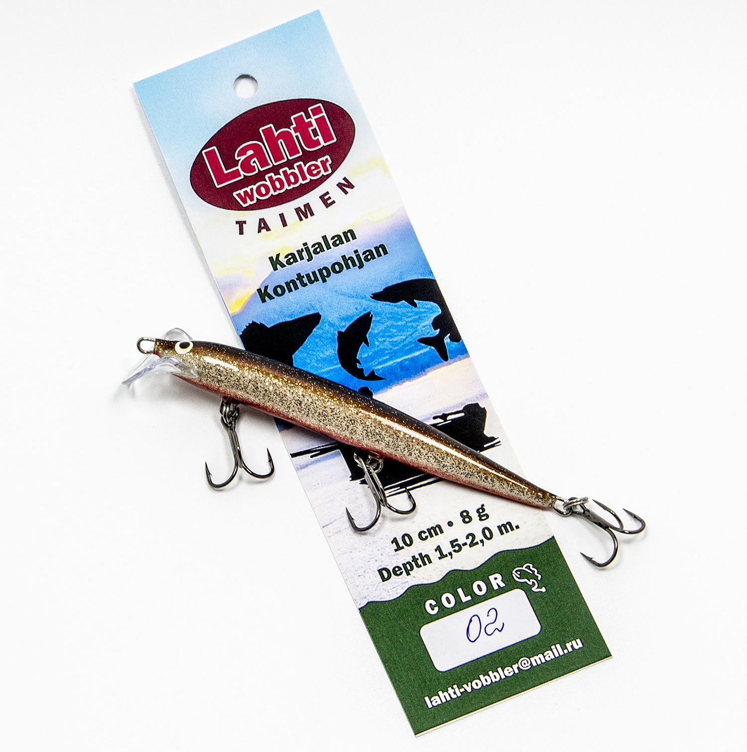 ТТХ Lahti Taimen: длина 10 см., вес: 8 гр., заглубление 1.5 - 2 метра.