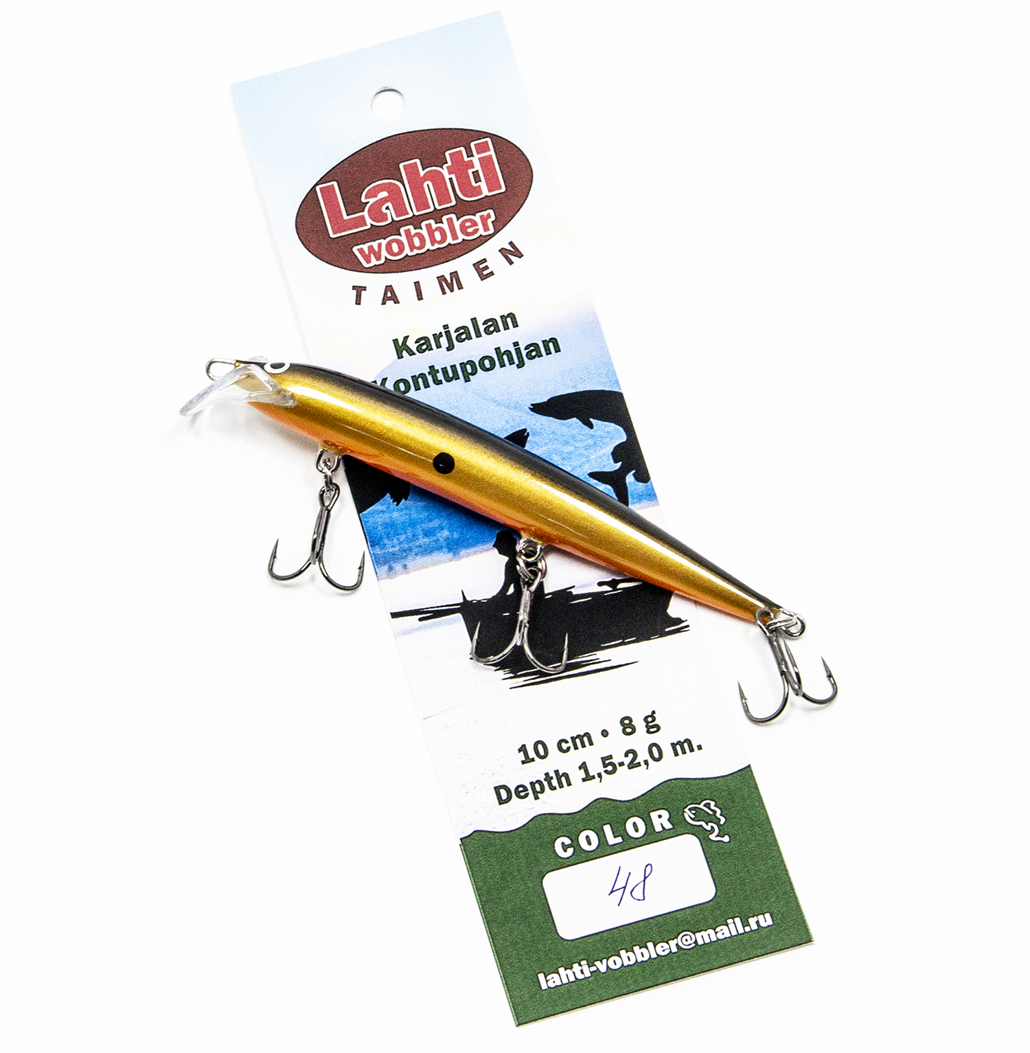 Это, пожалуй, самая универсальная модель из воблеров Lahti - производителя из карельского города Кондопога. Когда-то в этом городе хорошо освоили процесс литья корпуса воблера из пенополиуретана (в просторечии ППУ), что позволило существенно снизить стоимость воблера, увеличить объёмы ручного производства и повысить прочность приманок. Первопроходцами были Jarvi, потом появились и другие производители, в том числе Lahti. Ярви и Лахти иногда путают, потому что воблеры очень похожи и сделаны по одной технологии (и даже карта расцветок почти совпадает), но это чуть-чуть разные воблеры. Ловят, однако, и те, и те.