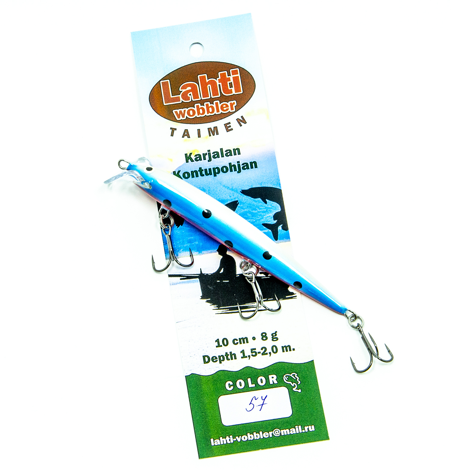 ТТХ Lahti Taimen: длина 10 см., вес: 8 гр., заглубление 1.5 - 2 метра.
