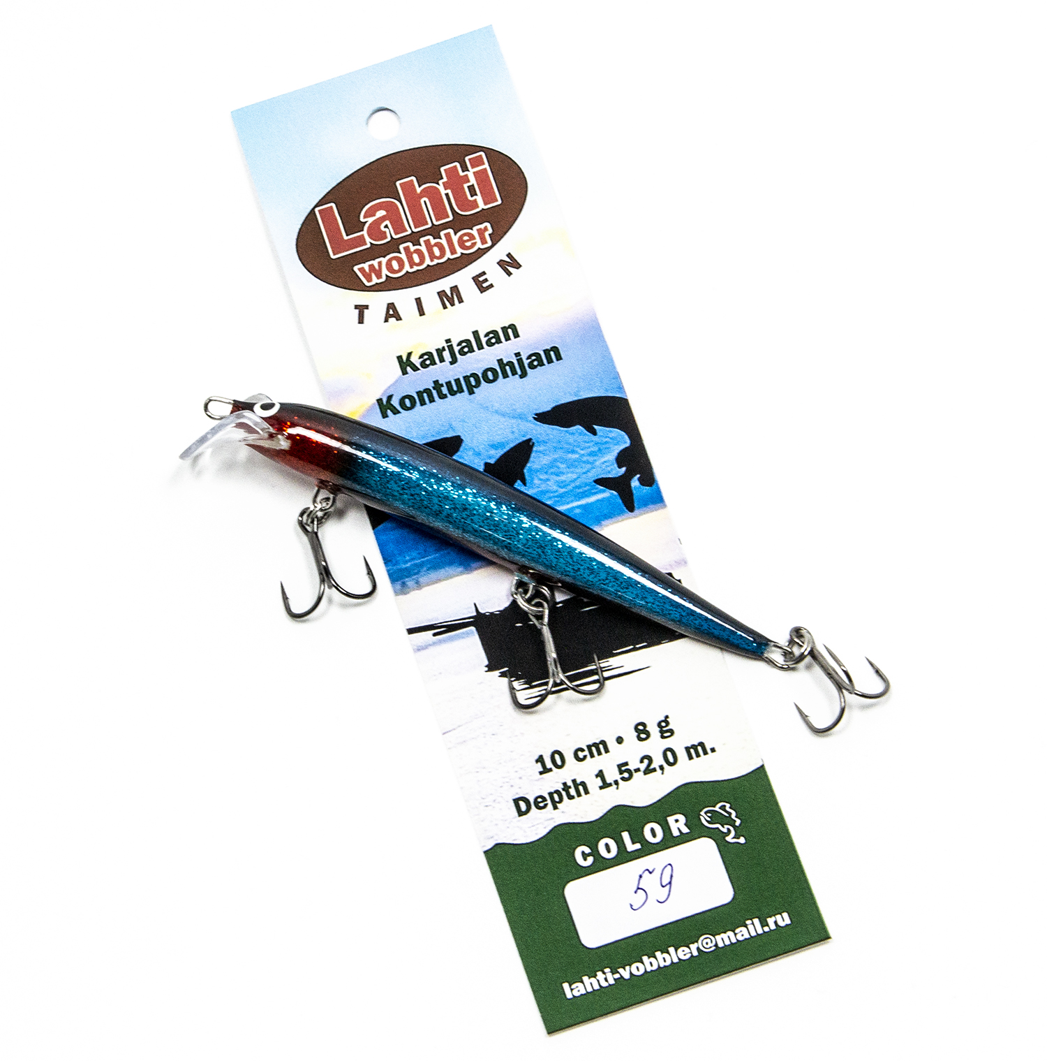 ТТХ Lahti Taimen: длина 10 см., вес: 8 гр., заглубление 1.5 - 2 метра.
