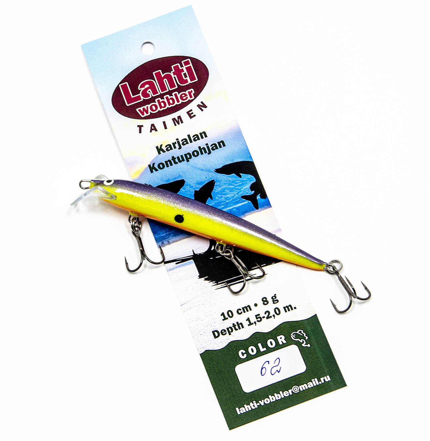 ТТХ Lahti Taimen: длина 10 см., вес: 8 гр., заглубление 1.5 - 2 метра.