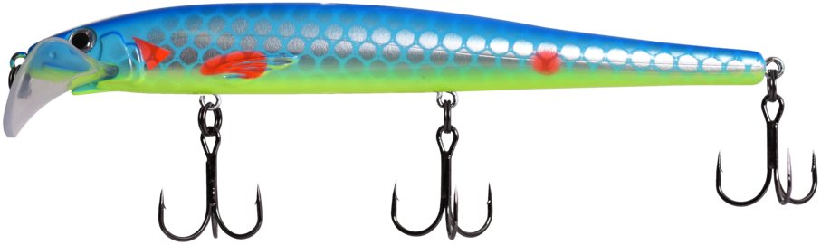 Данный воблер имеет размер 135 мм, и его форма может быть определена как «щепка». Такой тип приманок широко применяется в соседней Финляндии как на внутренних водоёмах, так и в Финском заливе. Особенностью этой формы и носовой лопатки является мелкочастотная игра и небольшое заглубление – порядка двух метров, что является востребованным практически у всех рыболовов-троллингистов.