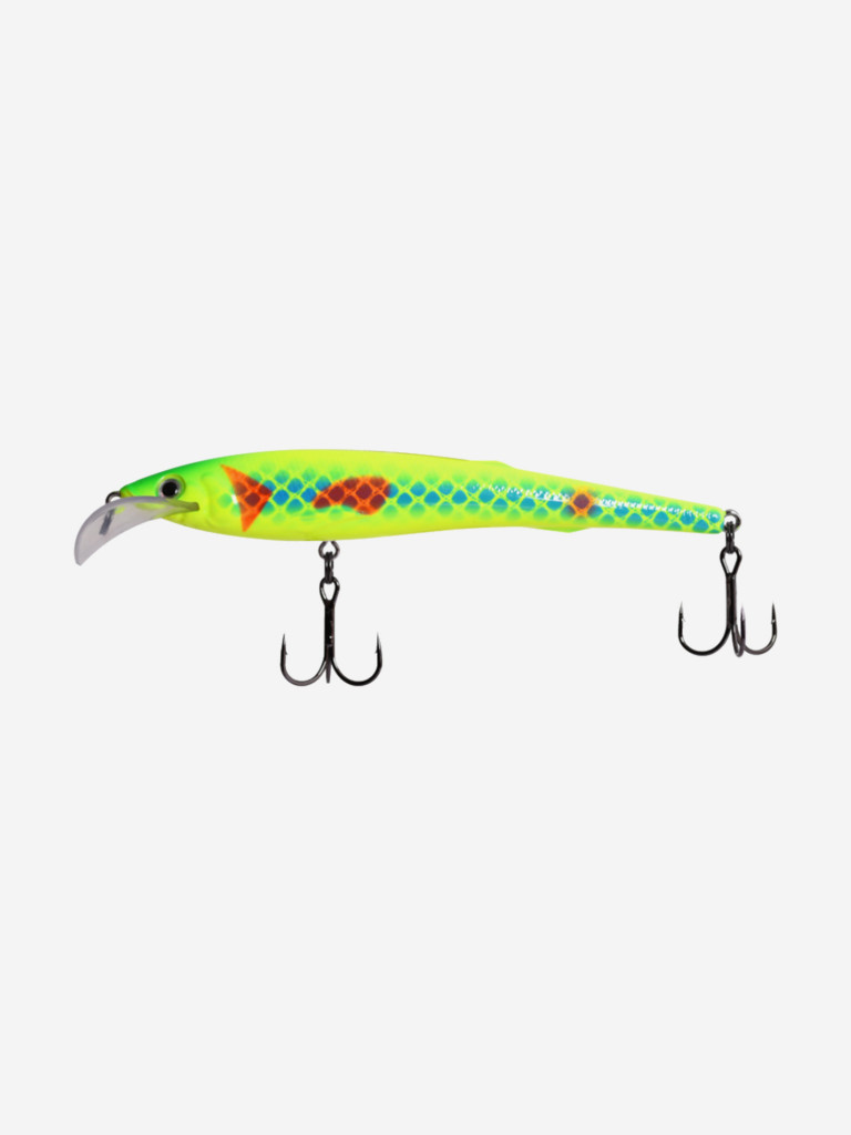 Модификация 110FMDR оснащена более крупной лопаткой 26 мм., что даёт заглубление воблера до 3,2 метра и довольно размашистую двойную игру с резкими отскоками вправо и влево от траектории проводки. Такая игра часто привлекает активного судака.