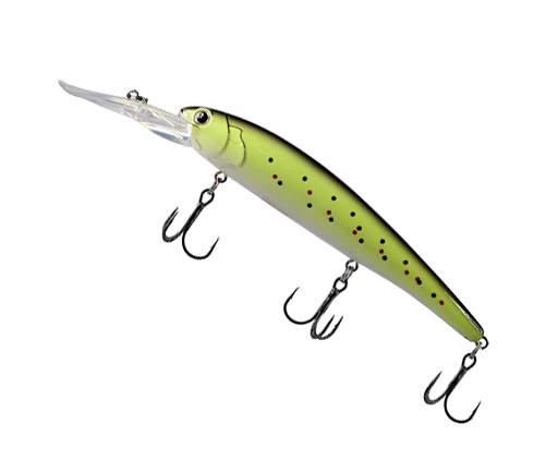 Это классический представитель воблеров семейства "deep runner". Вытянутое, прогонистое тело, низкоамплитудная и высокочастотная игра делают эту приманку идеальным выбором при ловле сома, щуки и судака. При троллинге на тонком шнуре этот воблер легко ныряет на глубину 5 метров.