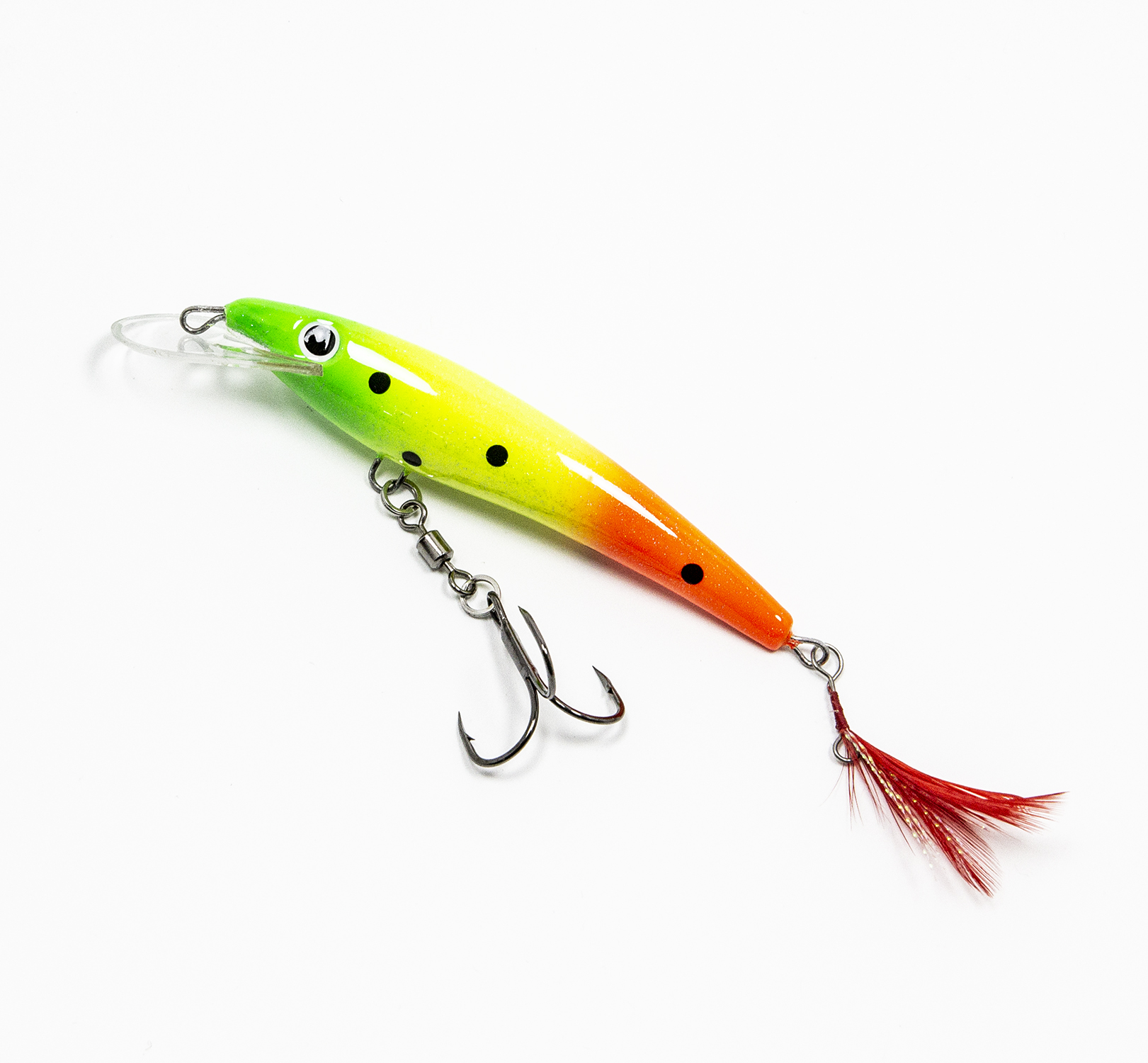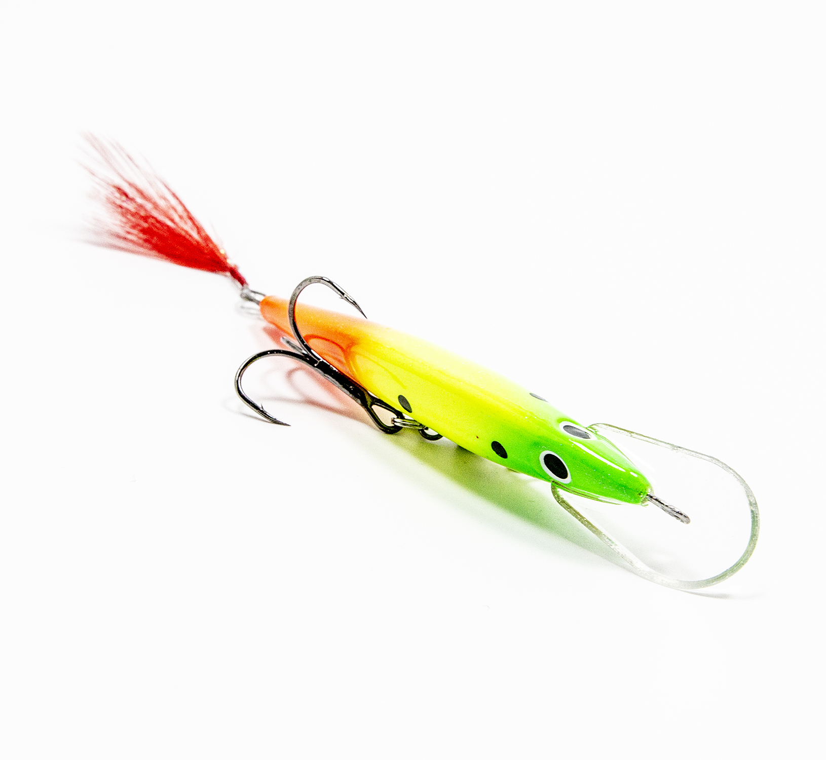Классический второй вариант оснащения с двумя тройниками №6 даёт более привычные глазу колебания и более спокойную игру. Он подходит как для ловли «на дорожку» (троллингом), так и для ловли «взаброс». Этот вариант игры лучше всего себя показал при ловле окуня.