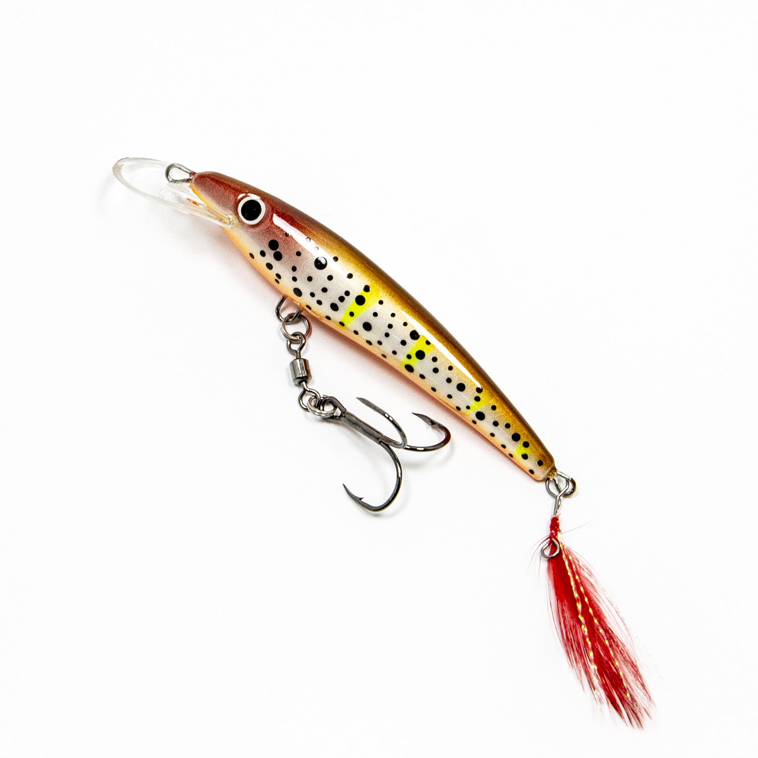 Классический второй вариант оснащения с двумя тройниками №6 даёт более привычные глазу колебания и более спокойную игру. Он подходит как для ловли «на дорожку» (троллингом), так и для ловли «взаброс». Этот вариант игры лучше всего себя показал при ловле окуня.