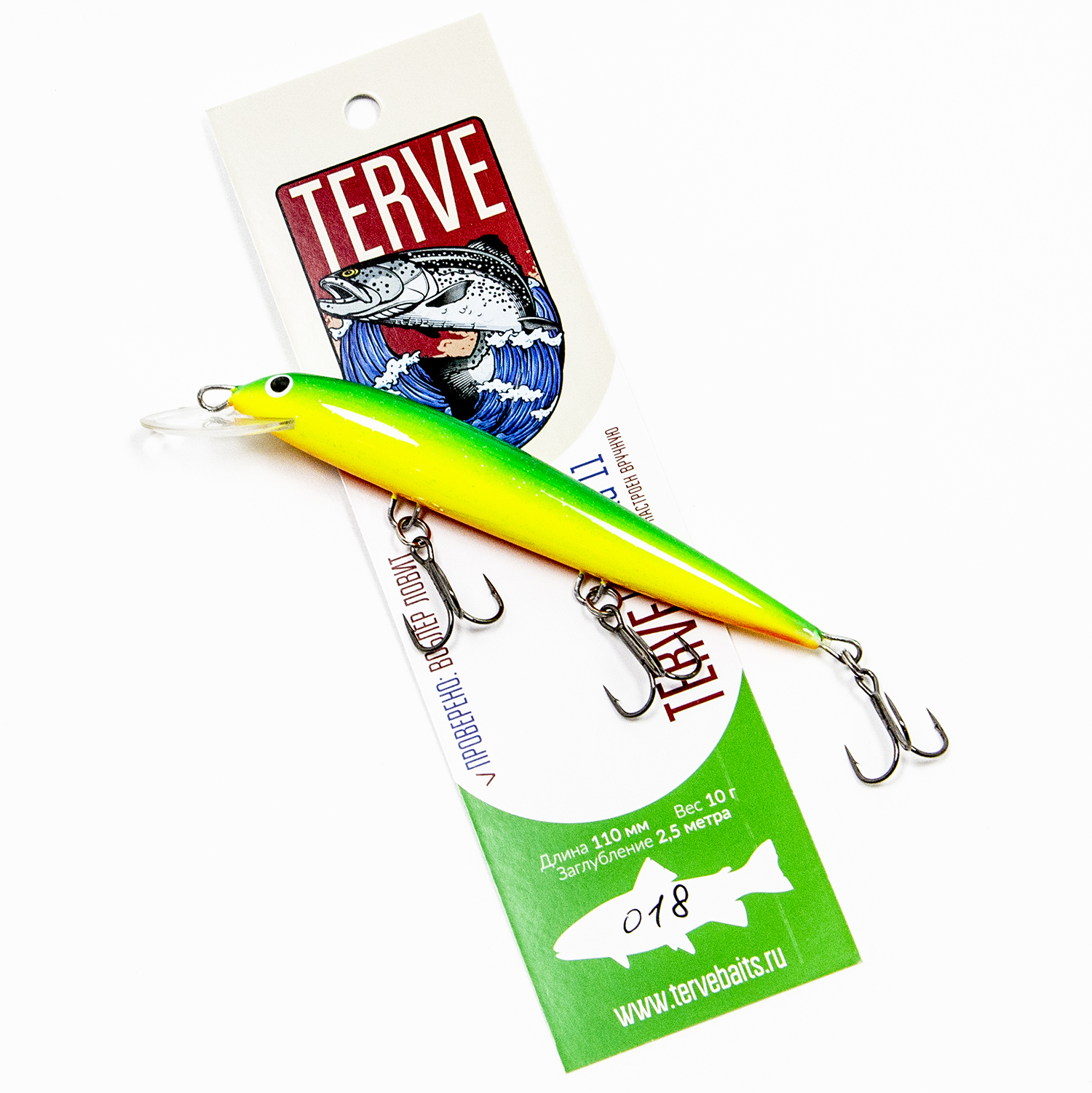 Приманки имеют качественную фурнитуру (не нужно менять крючки и заводные кольца). В расцветках воблеров Terve используются специальные UV-краски, которые ярко светятся в лучах ультрафиолета – это делает приманку более заметной на больших глубинах и в мутной воде. Долговечный корпус покрыт износостойкими лаками, не боится щучьих зубов и судачьих клыков.