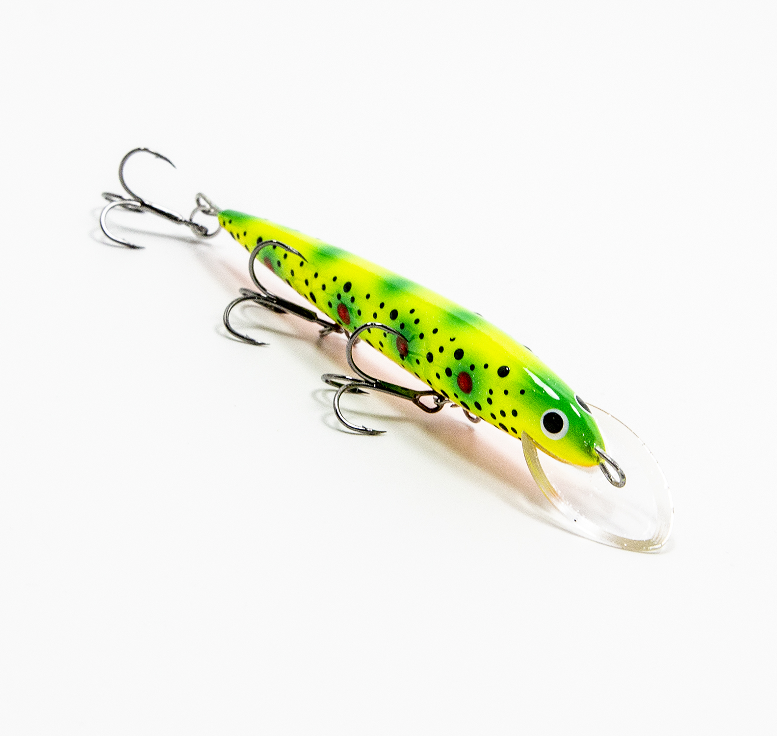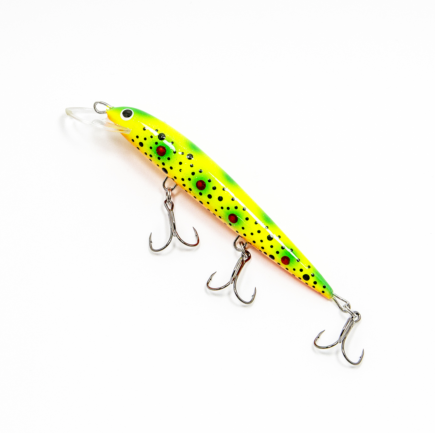 Воблеры Terve Laatokka 11 оснащены надёжными тройниками номер 6 с формой жала «орлиный коготь» (жало как бы загнуто чуть-чуть внутрь). Такие тройники минимизируют сходы бойких рыб во время вываживания. Менять тройники и кольца не требуется.