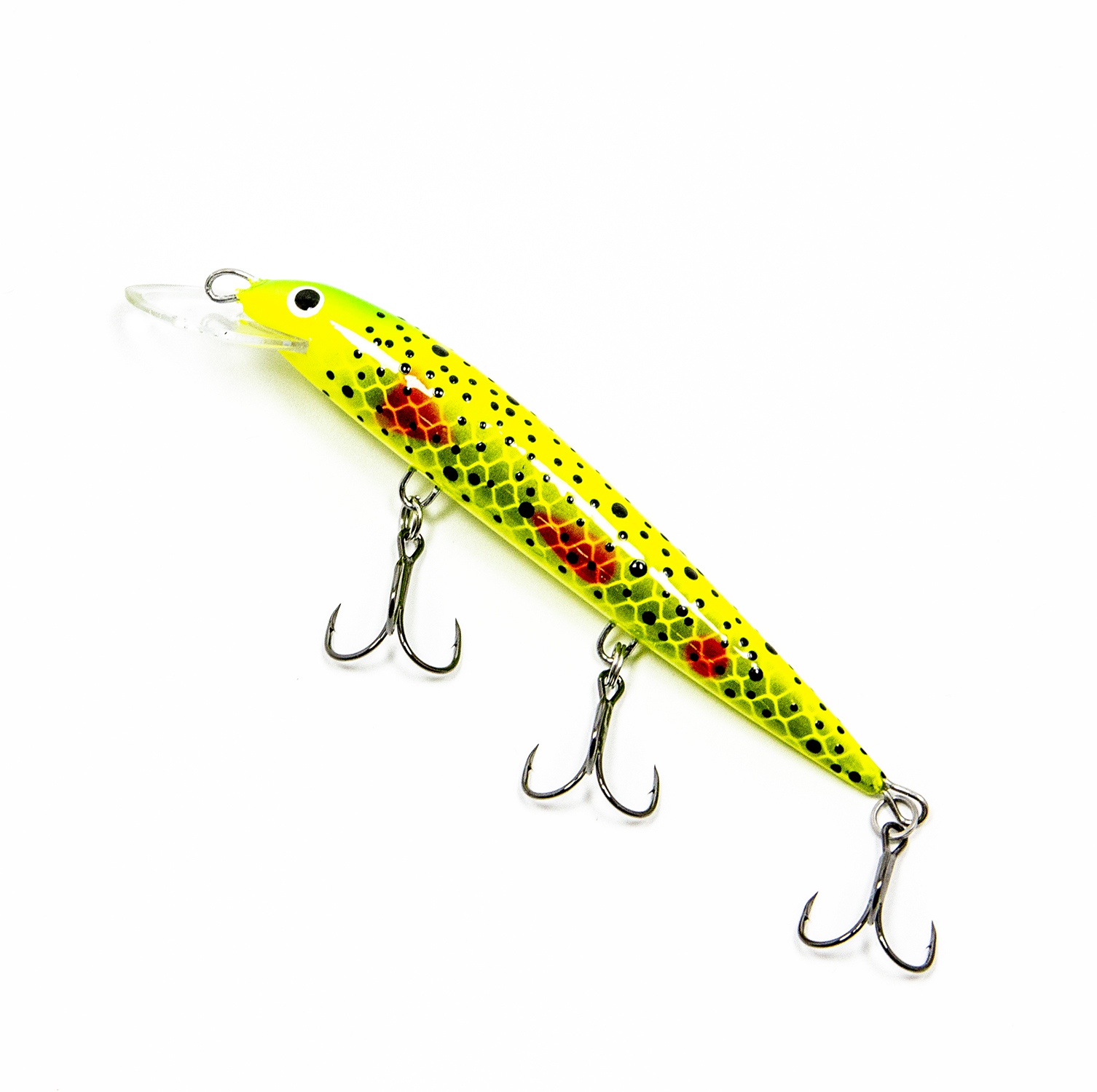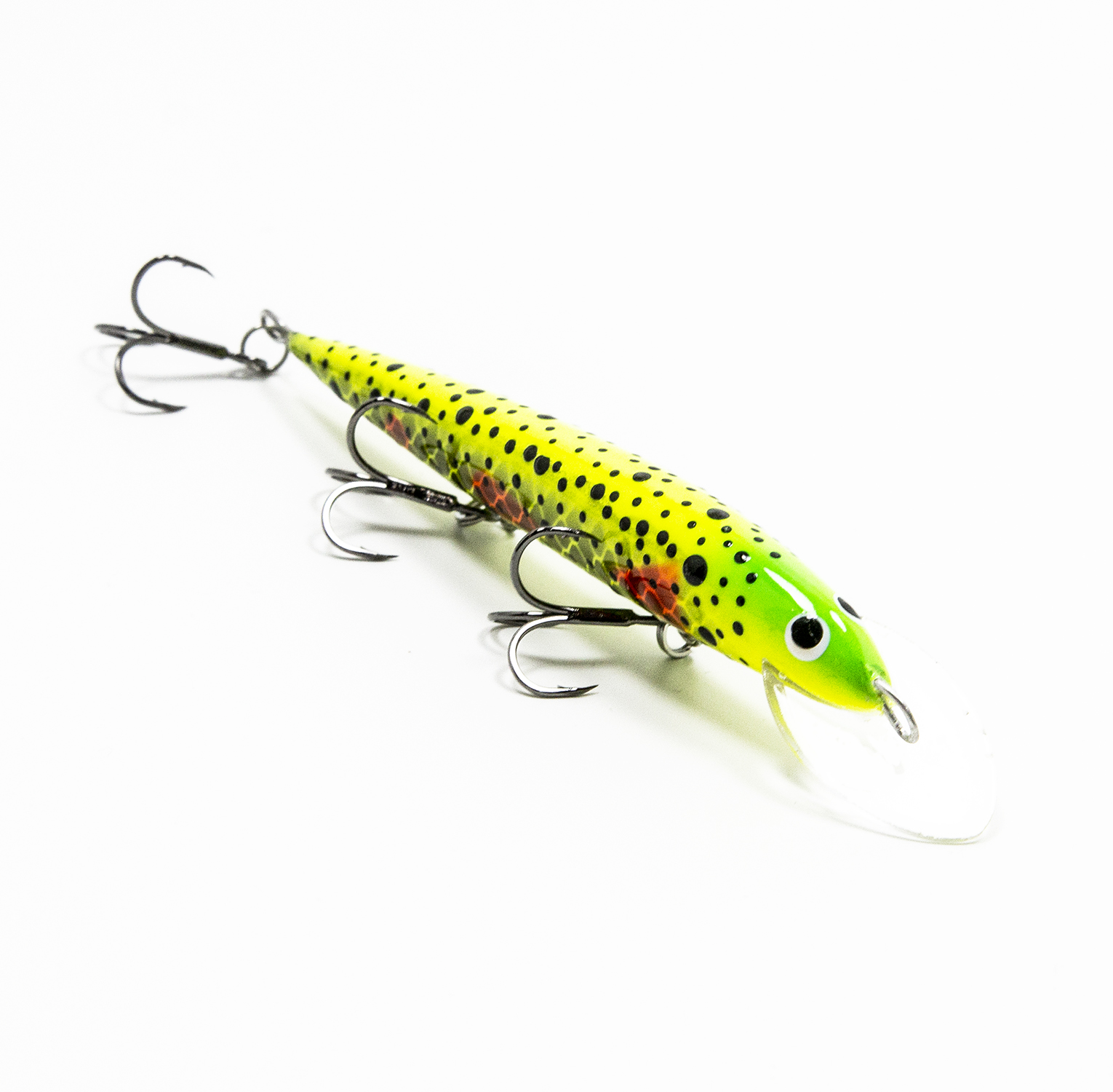 Воблеры Terve Laatokka 11 оснащены надёжными тройниками номер 6 с формой жала «орлиный коготь» (жало как бы загнуто чуть-чуть внутрь). Такие тройники минимизируют сходы бойких рыб во время вываживания. Менять тройники и кольца не требуется.