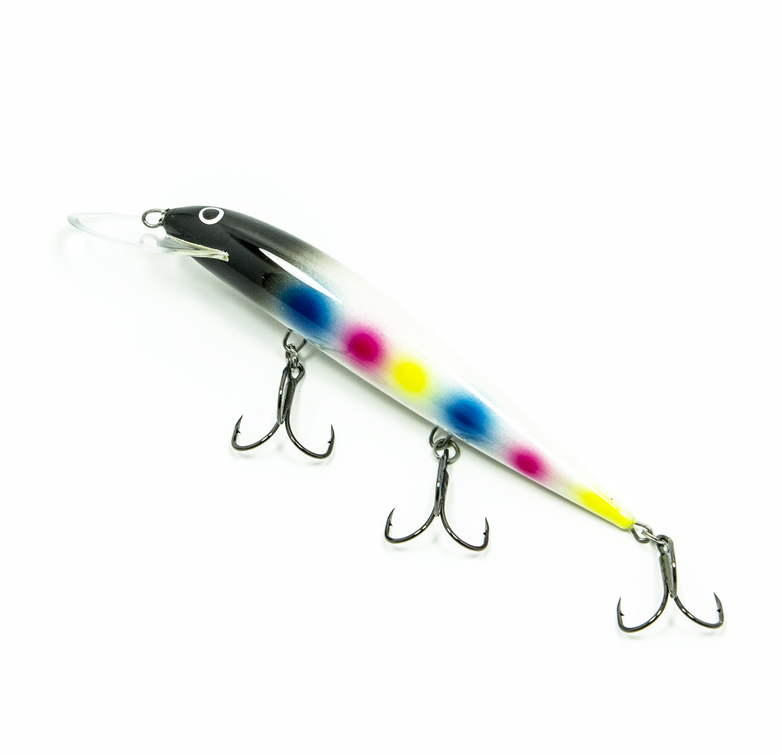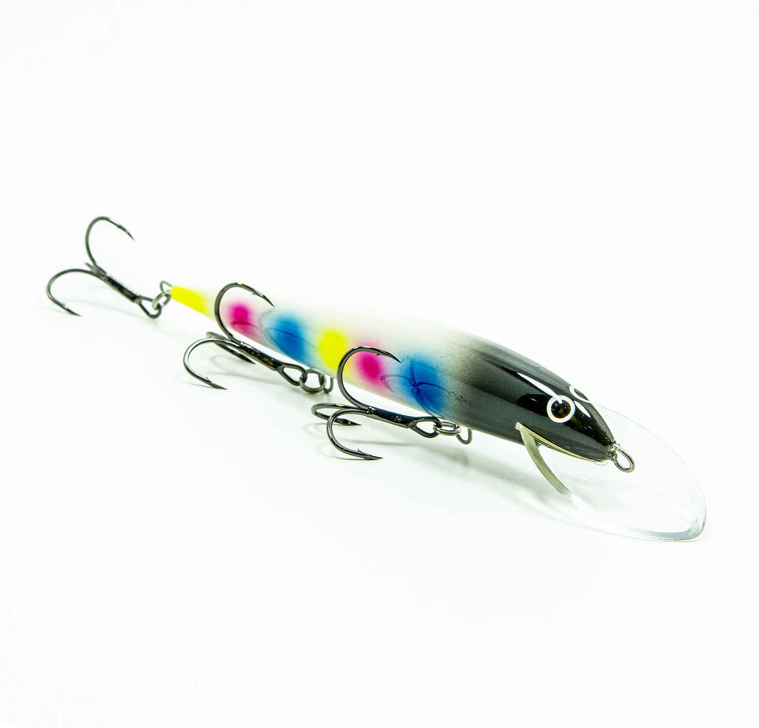 При разработке этой приманки инженеры решили сложную задачу. Нужно было придумать как сочетать большое заглубление (около 5 м.) с мелкочастотной, «дрожащей» игрой и минимальной амплитудой колебаний. Дело в том, что чем больше заглубление у воблера, тем больше по площади должна быть лопатка. А чем больше лопатка, тем более амплитудная игра у приманки, а судак и лососевые рыбы амплитудную игру часто игнорируют, чаще они предпочитают атаковать воблеры с мелкочастотной игрой. Стояла задача разработать воблер с заглублением 5 метров с широкой лопастью, но при этом сохранить мелкочастотную игру с минимумом амплитудных колебаний. Этого удалось добиться благодаря установке заострённой лопатки необычной формы (овальная лопатка как бы заострена подобно наконечнику стрелы). Так воблер приобрёл привлекательную для хищников мелкочастотную «дрожащую» игру и при этом он быстро погружается на рабочую глубину проводки (работает в горизонте от четырёх до пяти метров в зависимости от длины отпуска).