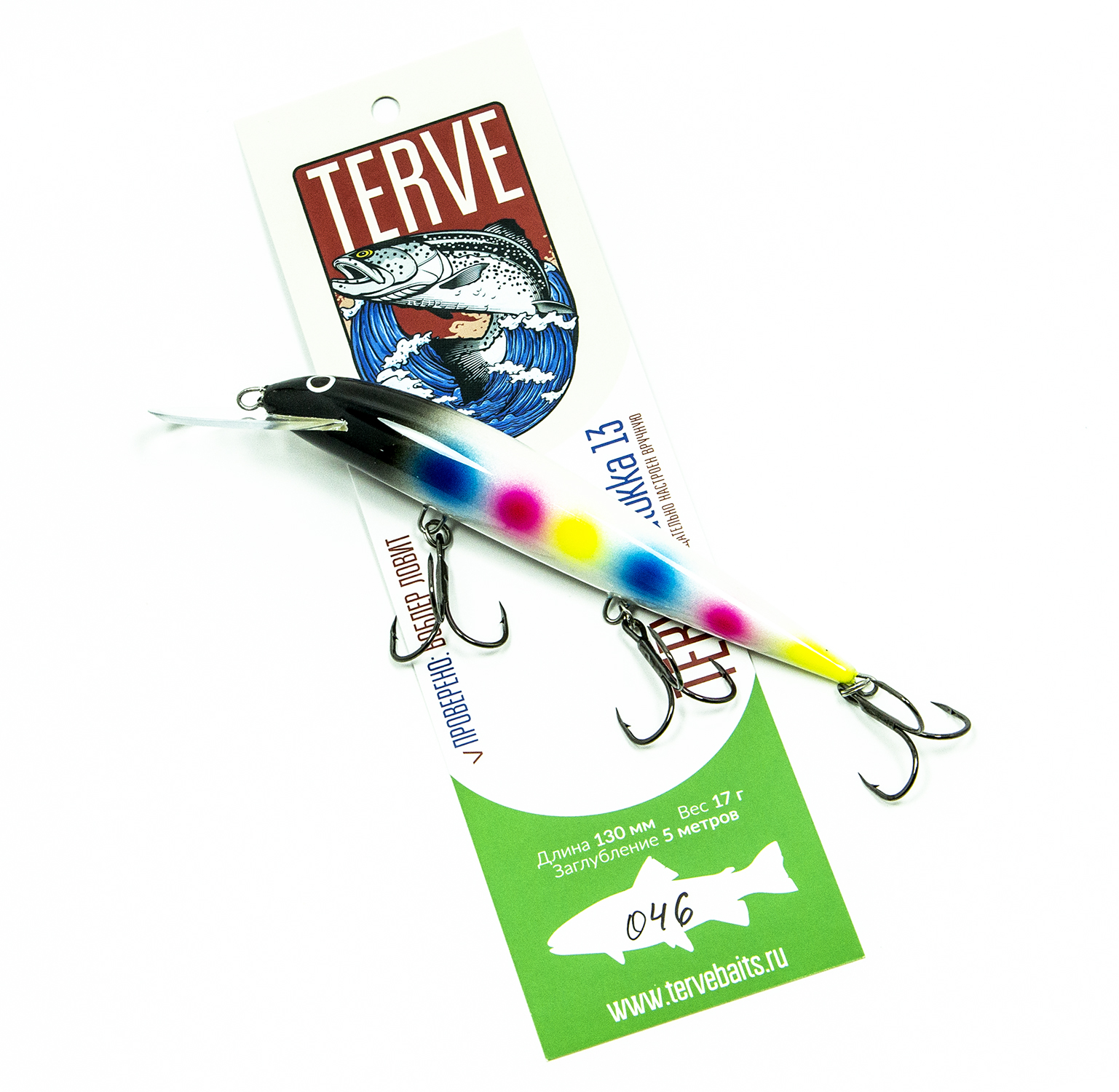 Воблер Terve Laatokka 13 см. – это удачная реплика очень известного и уловистого финского воблера Jarmo Karikko 13 см, одного из самых рабочих и популярных воблеров в мире! Эта приманка была разработана специально для троллинга судака и лососевых рыб, но не менее хорошо она справляется и с ловлей щуки.