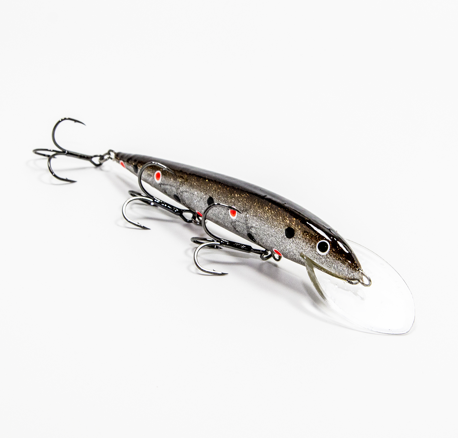 При разработке этой приманки инженеры решили сложную задачу. Нужно было придумать как сочетать большое заглубление (около 5 м.) с мелкочастотной, «дрожащей» игрой и минимальной амплитудой колебаний. Дело в том, что чем больше заглубление у воблера, тем больше по площади должна быть лопатка. А чем больше лопатка, тем более амплитудная игра у приманки, а судак и лососевые рыбы амплитудную игру часто игнорируют, чаще они предпочитают атаковать воблеры с мелкочастотной игрой. Стояла задача разработать воблер с заглублением 5 метров с широкой лопастью, но при этом сохранить мелкочастотную игру с минимумом амплитудных колебаний. Этого удалось добиться благодаря установке заострённой лопатки необычной формы (овальная лопатка как бы заострена подобно наконечнику стрелы). Так воблер приобрёл привлекательную для хищников мелкочастотную «дрожащую» игру и при этом он быстро погружается на рабочую глубину проводки (работает в горизонте от четырёх до пяти метров в зависимости от длины отпуска).