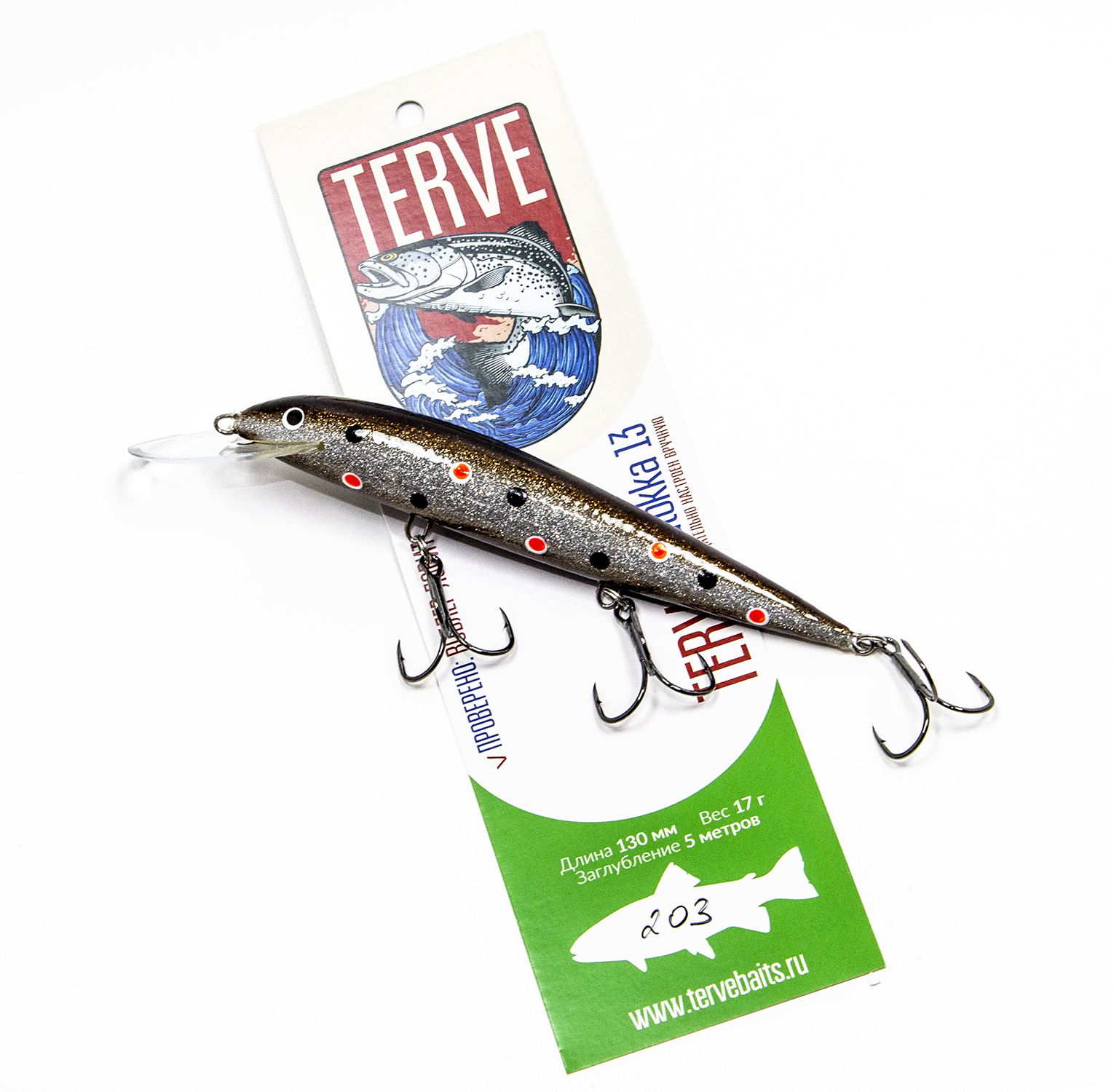 Воблер Terve Laatokka 13 см. работает и на троллинге, и взаброс. Ловит судака, щуку, окуня, кумжу, лосося и палию.