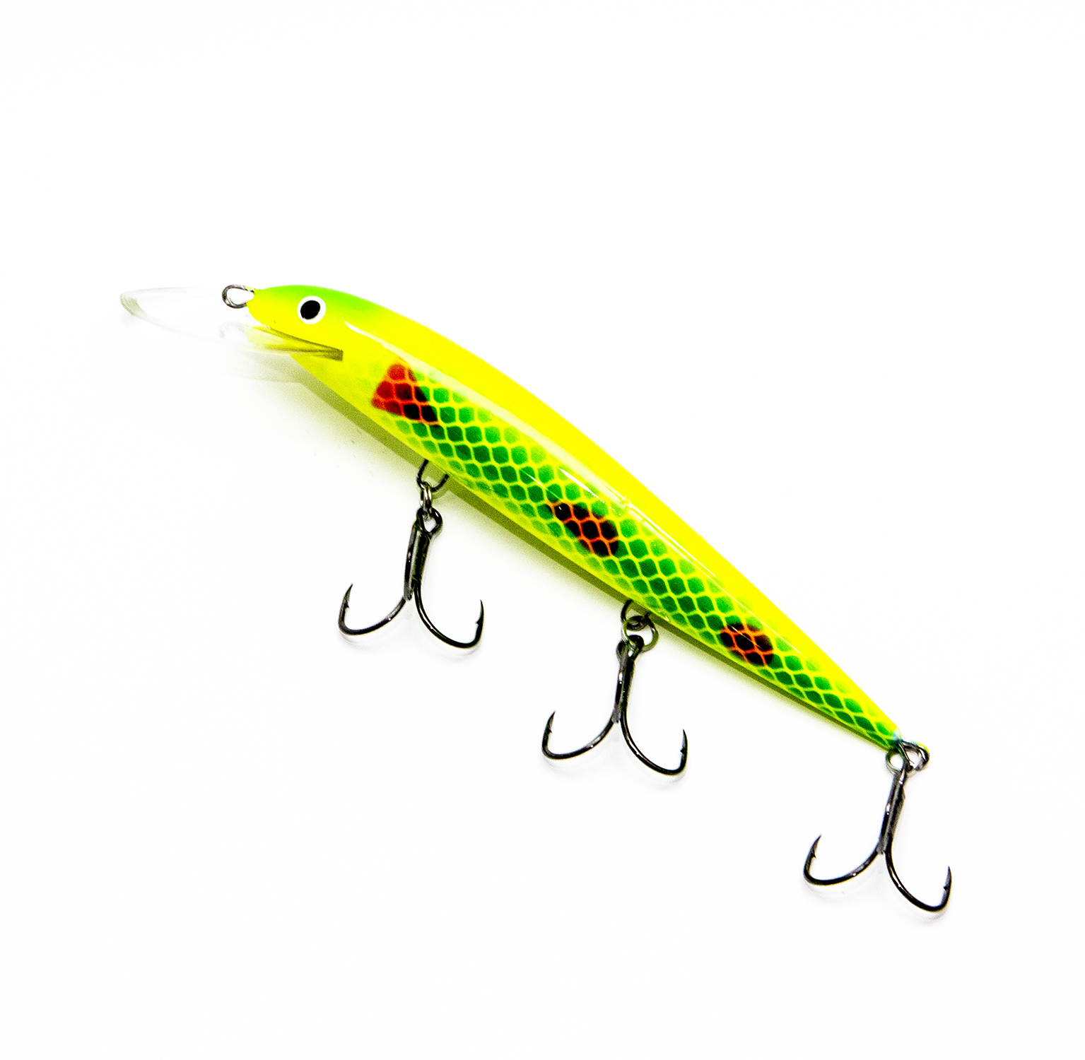 При разработке этой приманки инженеры решили сложную задачу. Нужно было придумать как сочетать большое заглубление (около 5 м.) с мелкочастотной, «дрожащей» игрой и минимальной амплитудой колебаний. Дело в том, что чем больше заглубление у воблера, тем больше по площади должна быть лопатка. А чем больше лопатка, тем более амплитудная игра у приманки, а судак и лососевые рыбы амплитудную игру часто игнорируют, чаще они предпочитают атаковать воблеры с мелкочастотной игрой. Стояла задача разработать воблер с заглублением 5 метров с широкой лопастью, но при этом сохранить мелкочастотную игру с минимумом амплитудных колебаний. Этого удалось добиться благодаря установке заострённой лопатки необычной формы (овальная лопатка как бы заострена подобно наконечнику стрелы). Так воблер приобрёл привлекательную для хищников мелкочастотную «дрожащую» игру и при этом он быстро погружается на рабочую глубину проводки (работает в горизонте от четырёх до пяти метров в зависимости от длины отпуска).