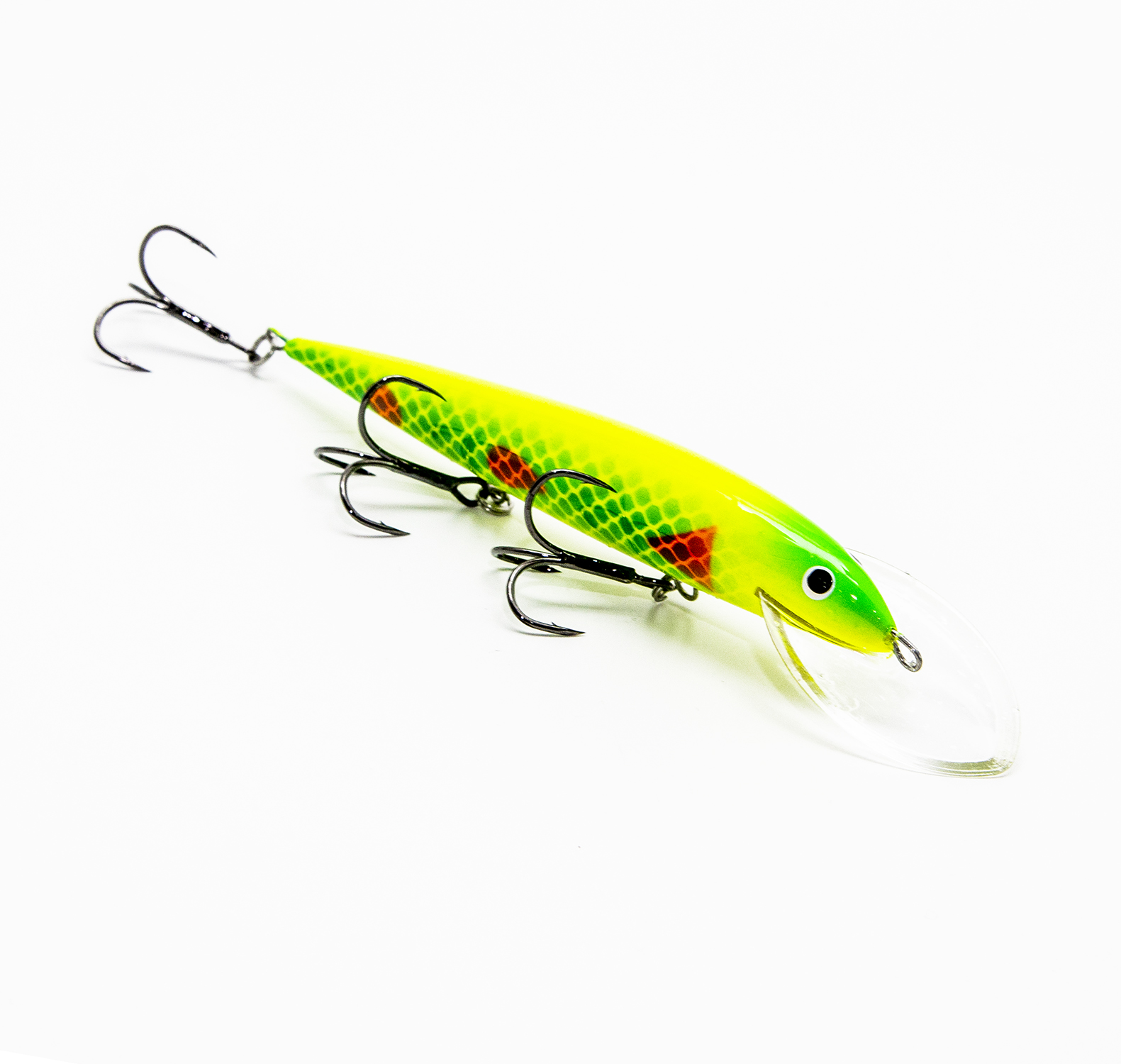 Воблеры Terve Laatokka 13 оснащены надёжными и мощными тройниками номер 2 с формой жала «орлиный коготь» (жало как бы загнуто чуть-чуть внутрь). Такие тройники минимизируют сходы бойких рыб во время вываживания. Менять тройники и кольца не требуется.