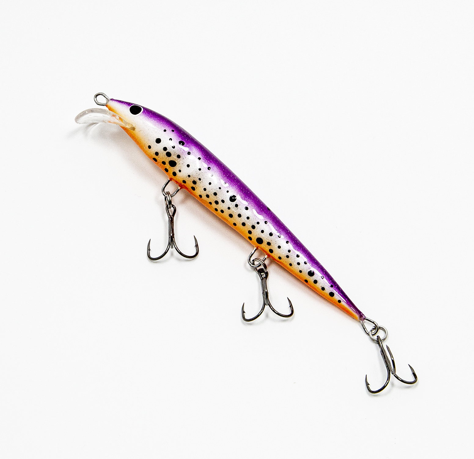 Модель имеет очень много вариантов расцветок с упором на лососевых и судака, однако есть и натуральные расцветки. Воблер оснащён хорошей надёжной фурнитурой, ни крючки, ни кольца менять вам не придётся.