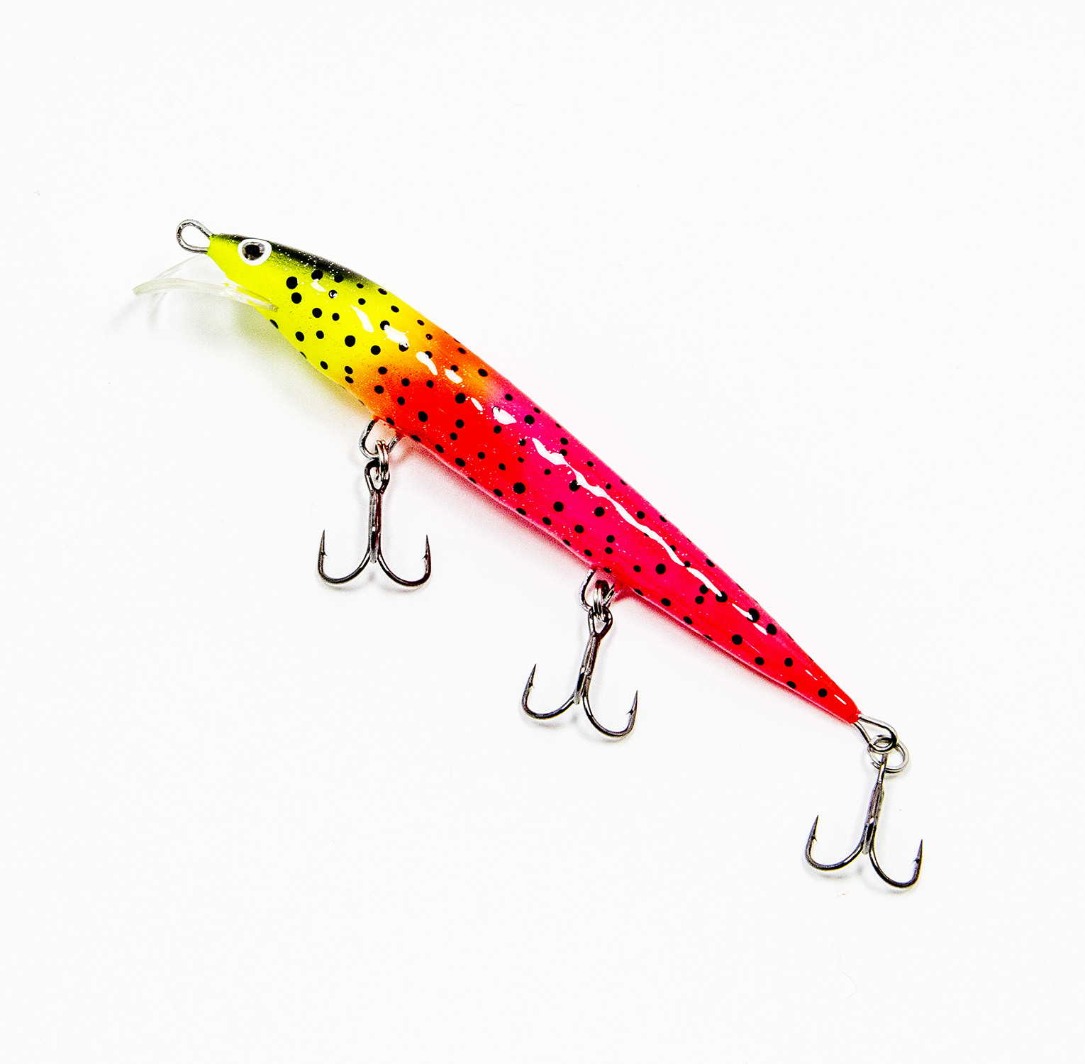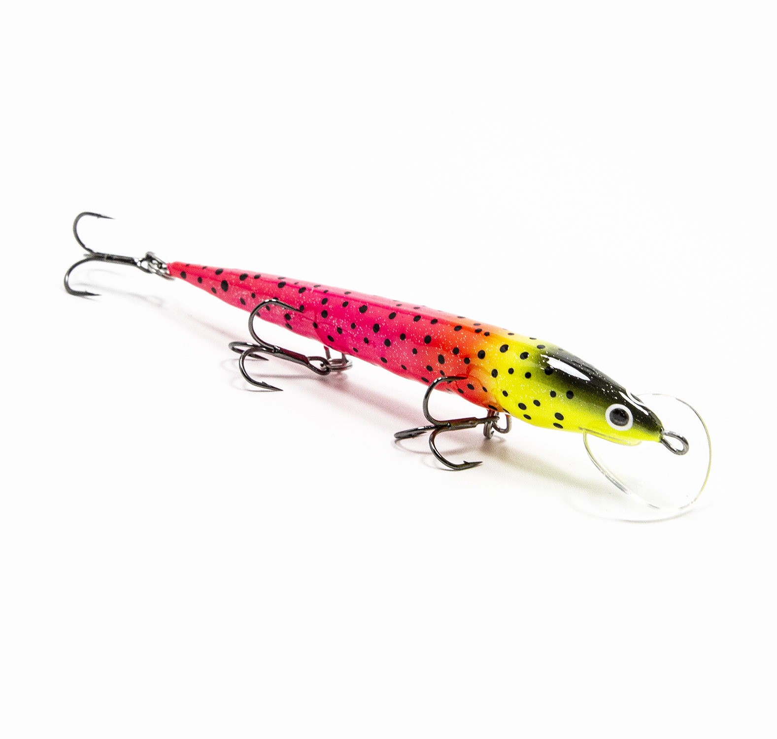 Модель имеет очень много вариантов расцветок с упором на лососевых и судака, однако есть и натуральные расцветки. Воблер оснащён хорошей надёжной фурнитурой, ни крючки, ни кольца менять вам не придётся.