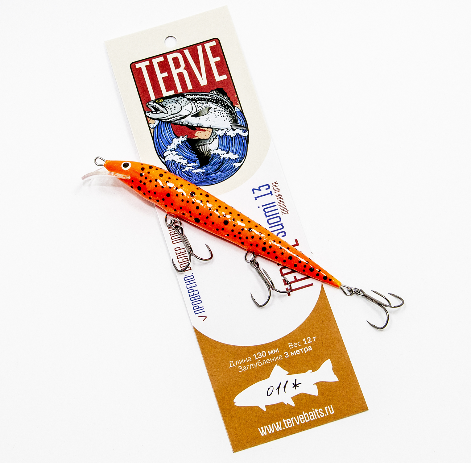 Воблер Terve Suomi - это классический троллинговый минноу с седловидной лопаткой. Тем не менее, конструктивно он сделан не совсем обычно – корпус воблера ребристый, что при проводке создаёт дополнительные завихрения воды, привлекающие хищника. Мы не знаем точно в чём секрет этой приманки, но Terve Suomi прекрасно ловит на равномерной проводке без какой-либо дополнительной анимации и показал отличные результаты при ловле судака, щуки и лосося.
