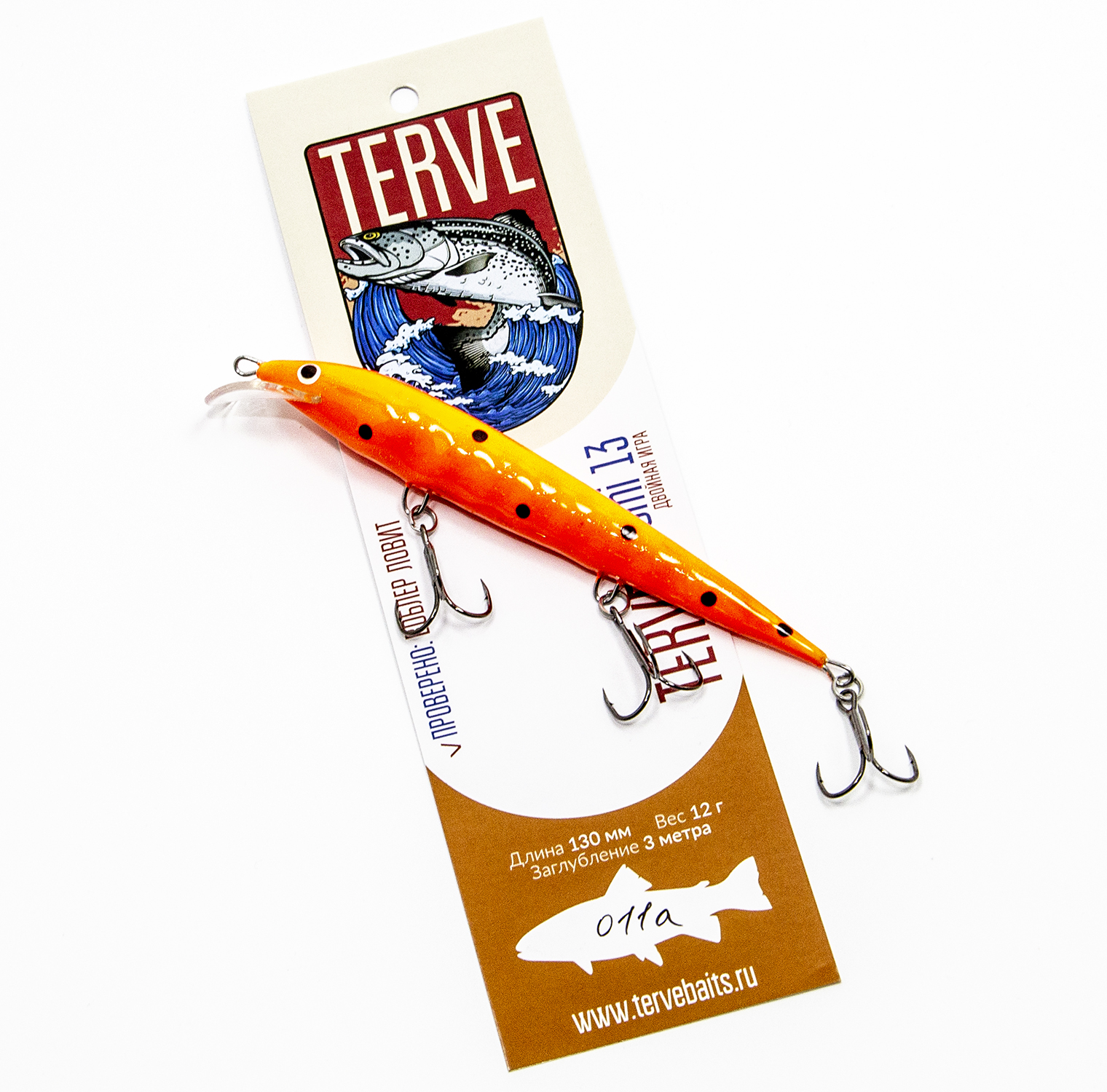 Воблер Terve Suomi - это классический троллинговый минноу с седловидной лопаткой. Тем не менее, конструктивно он сделан не совсем обычно – корпус воблера ребристый, что при проводке создаёт дополнительные завихрения воды, привлекающие хищника. Мы не знаем точно в чём секрет этой приманки, но Terve Suomi прекрасно ловит на равномерной проводке без какой-либо дополнительной анимации и показал отличные результаты при ловле судака, щуки и лосося.