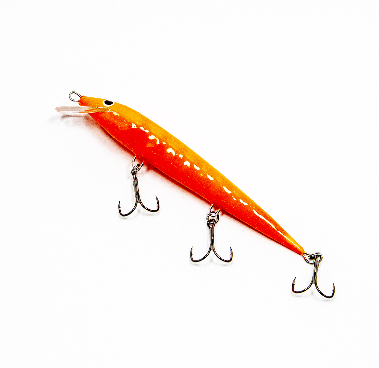 Воблер оснащён хорошей надёжной фурнитурой, ни крючки, ни кольца менять вам не придётся. Тут установлены тройники с формой жала «орлиный коготь» (жало как бы загнуто чуть-чуть внутрь). Такие тройники минимизируют сходы бойких рыб во время вываживания.