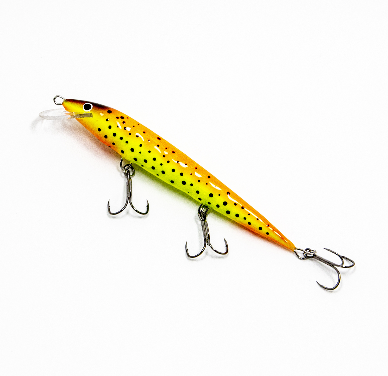 Воблер оснащён хорошей надёжной фурнитурой, ни крючки, ни кольца менять вам не придётся. Тут установлены тройники с формой жала «орлиный коготь» (жало как бы загнуто чуть-чуть внутрь). Такие тройники минимизируют сходы бойких рыб во время вываживания.