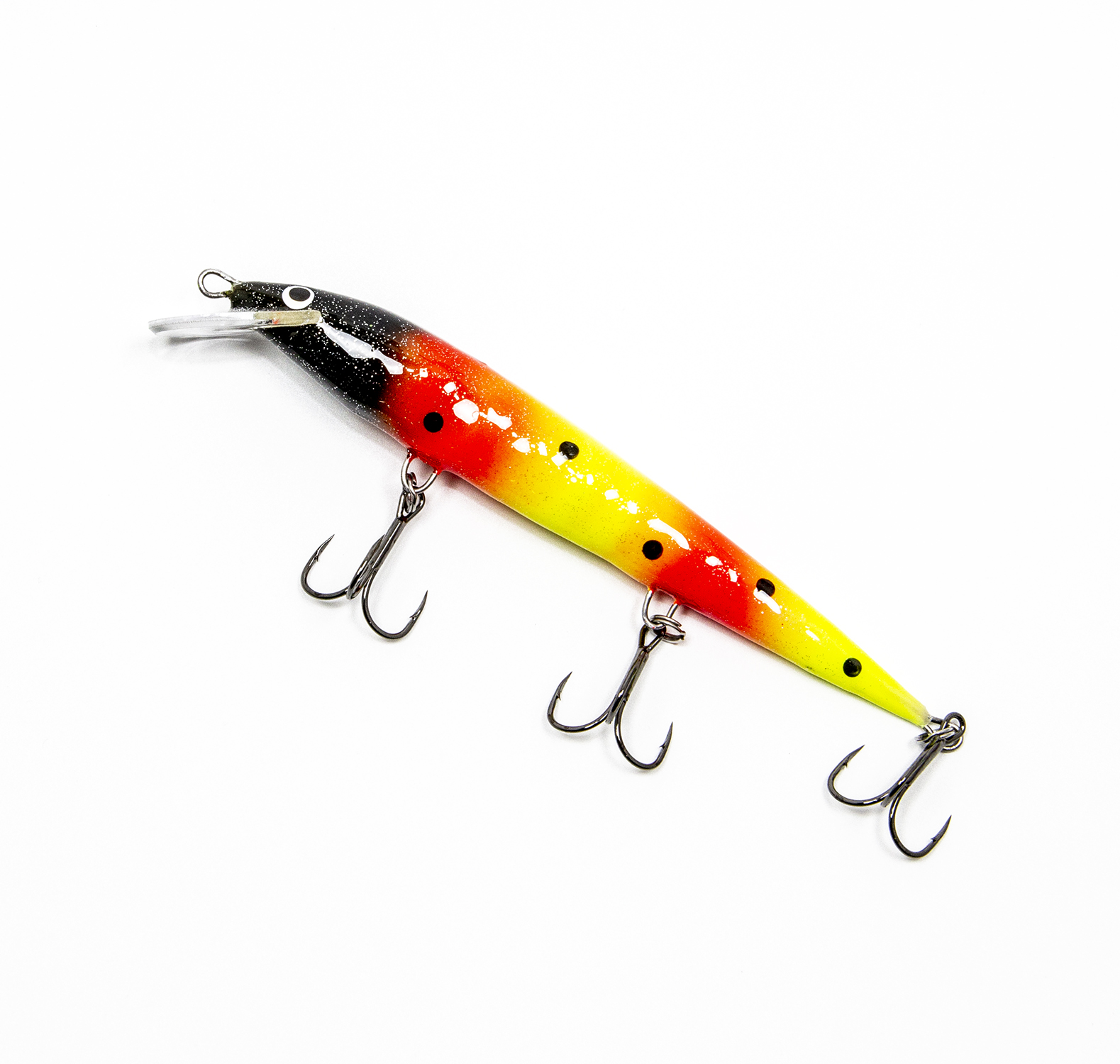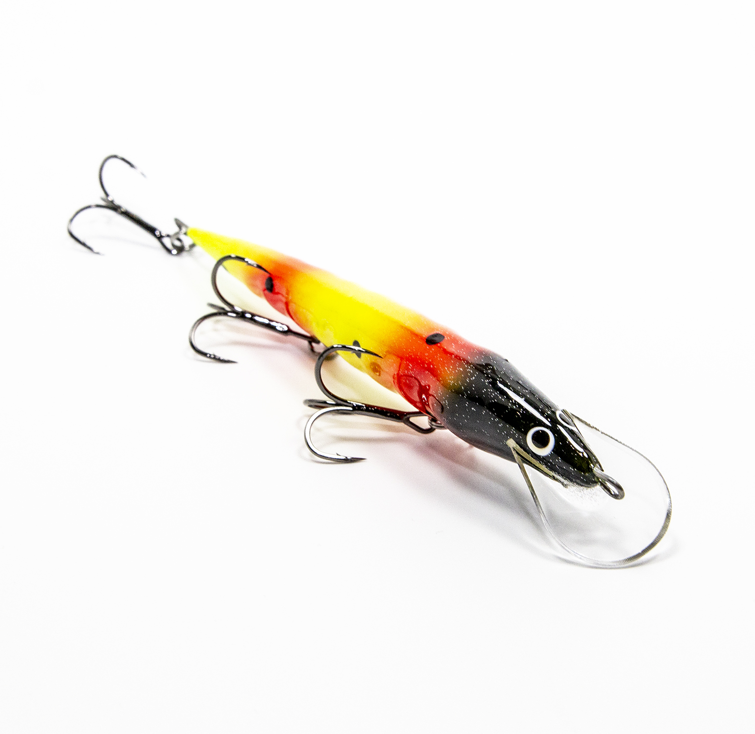 Воблер оснащён хорошей надёжной фурнитурой, ни крючки, ни кольца менять вам не придётся. Тут установлены тройники с формой жала «орлиный коготь» (жало как бы загнуто чуть-чуть внутрь). Такие тройники минимизируют сходы бойких рыб во время вываживания.