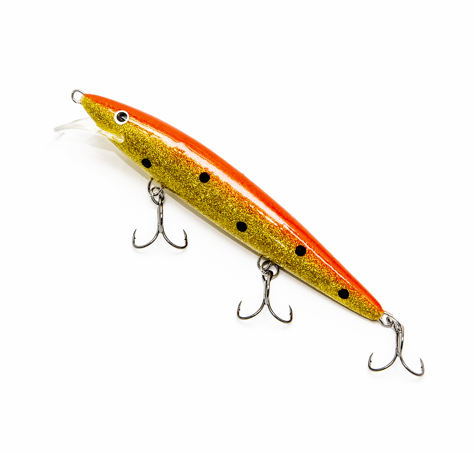 Это очень хорошая, рабочая реплика польского воблера Salmo Whacky 120F, который исчез с российского рынка.