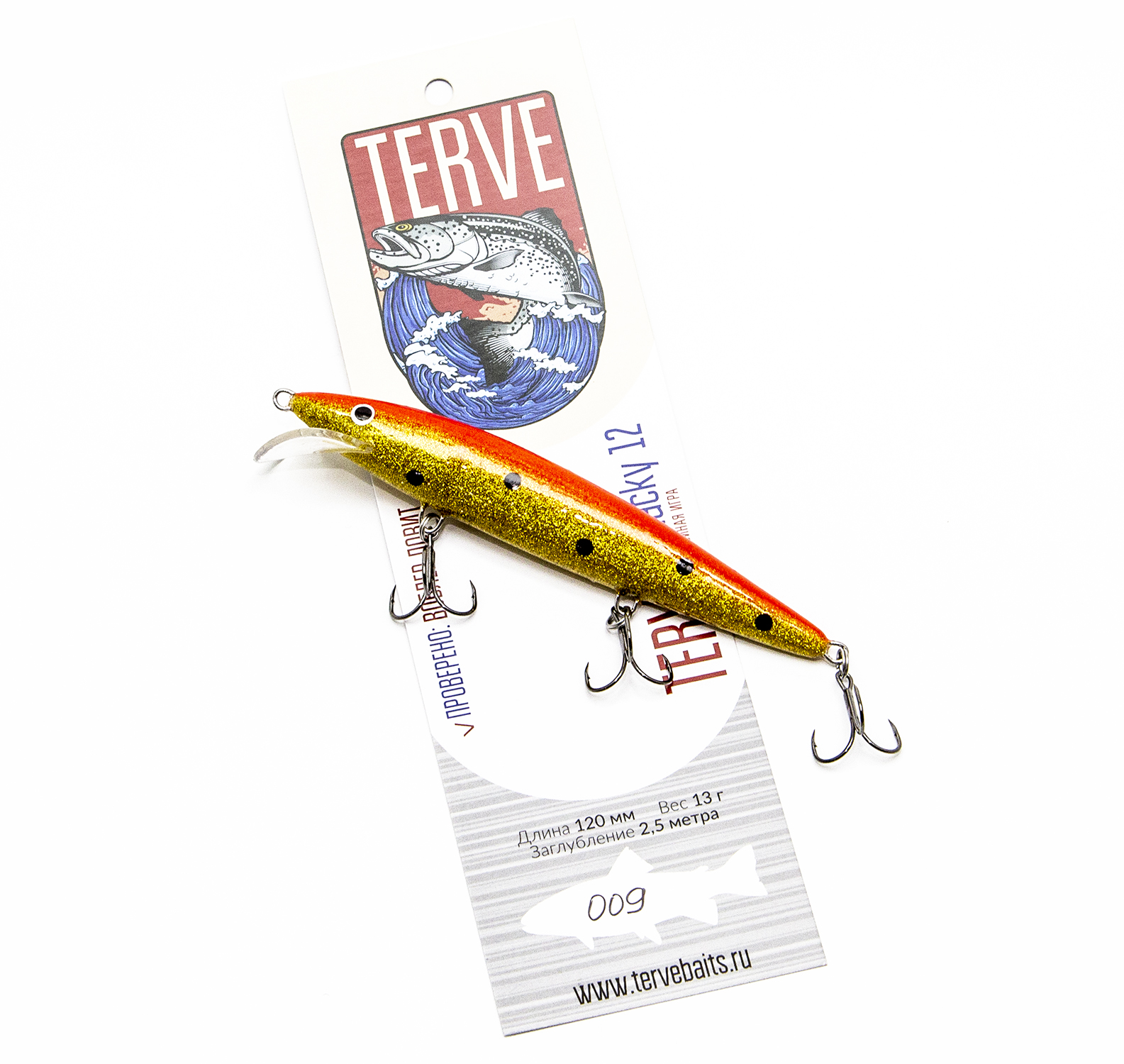 ТТХ воблера: длина 120 мм., вес – 13 грамм, заглубление 2,5 метра. Воблер плавающий.