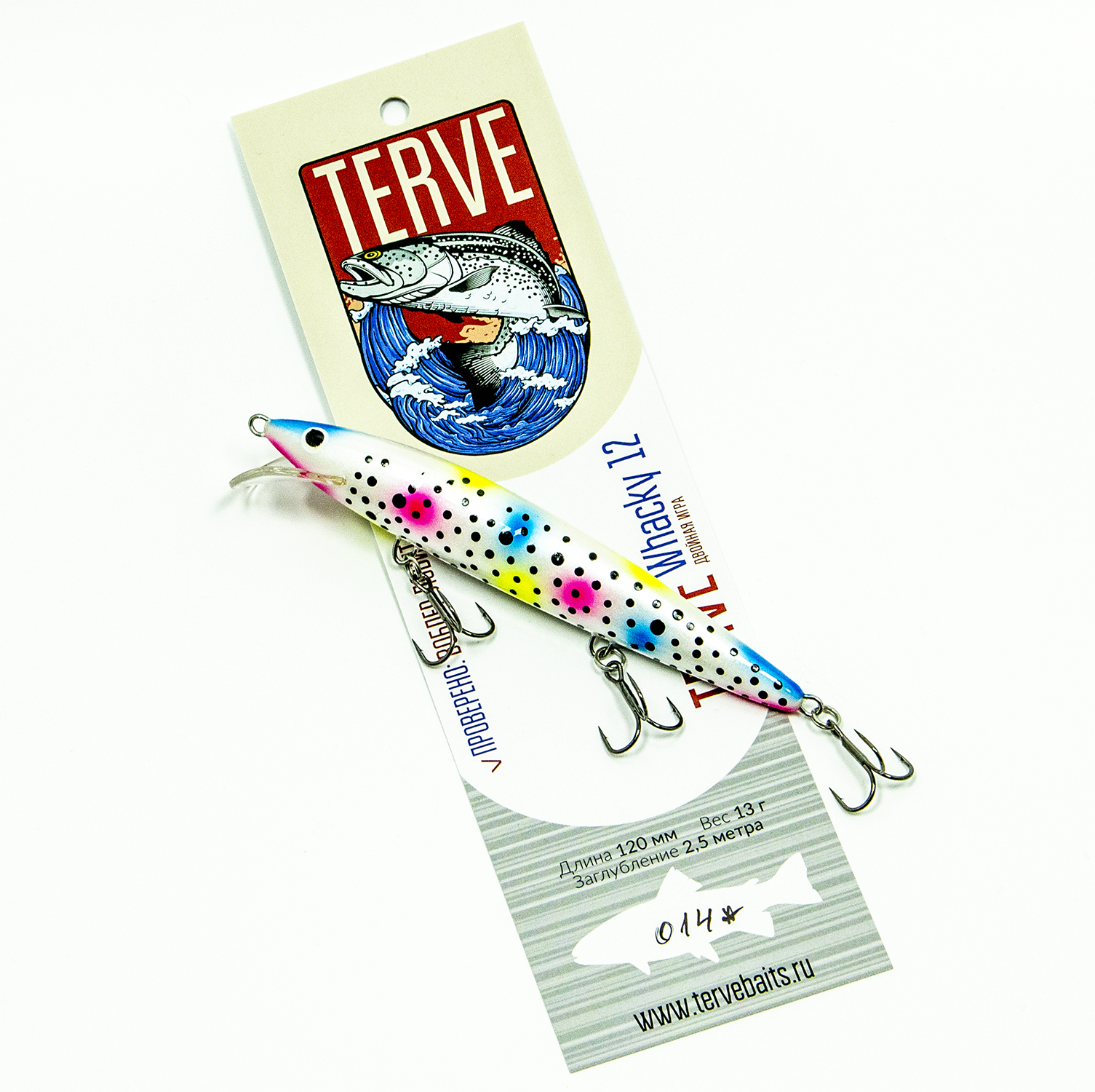В ходе практических испытаний была установлена высокая стабильность работы Terve Whacky на протяжении всего сезона открытой воды. Об универсальности этой приманки много говорит то, что воблер ещё на этапе предсерийных испытаний отлично ловил совершенно разных хищников на очень разных и отдалённых друг от друга водоёмах - щуку, судака, окуня, лосося, кумжу, палию. Очень быстро стало понятно, что Terve Whacky 12 срочно нужно запускать в серийное производство.