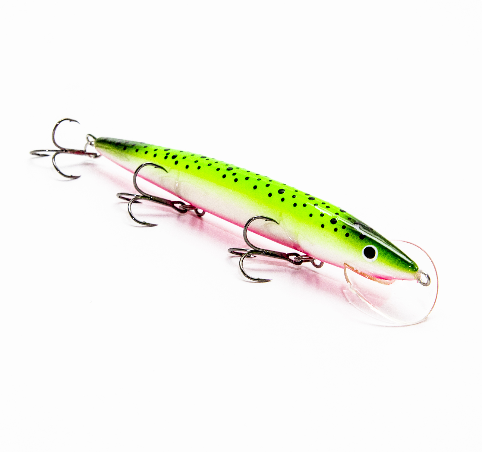Несмотря на то, что Terve Whacky 12 проектировался для ловли троллингом, воблер отлично работает и взаброс. Особенно это касается мест с быстрым течением, бурунами или перекатами. И здесь опять причиной седловидная лопасть, надежно стабилизирующая приманку в водном потоке. Нервные броски из стороны в сторону, хаотичные рыскающие движения - все это способно спровоцировать даже сытого хищника на поклевку. Достаточно изменить скорость проводки, и вы получаете совсем другую приманку. Равномерная спокойная игра с короткими четкими колебаниями на медленной проводке способна измениться на полное аритмичное "сумасшествие" при ускоренном темпе.