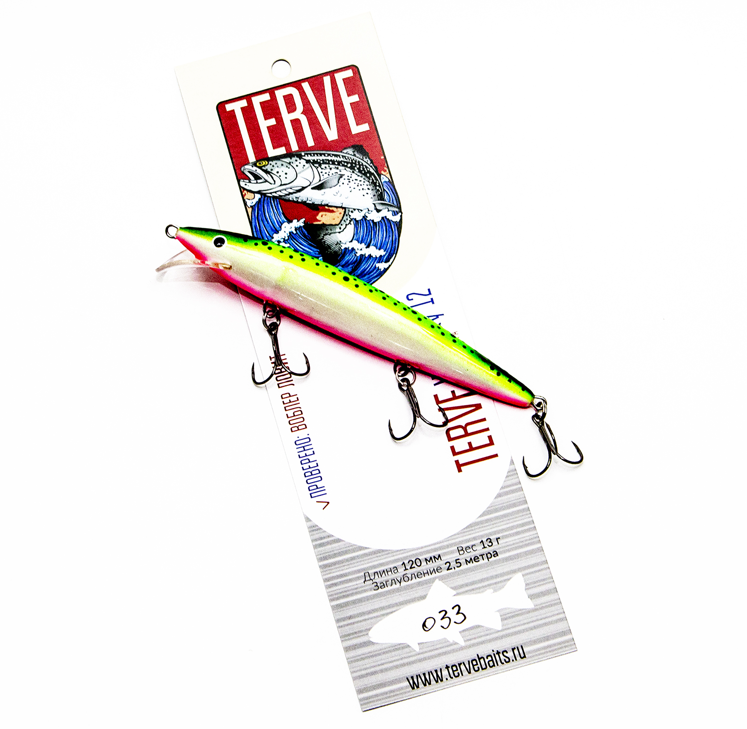 В ходе практических испытаний была установлена высокая стабильность работы Terve Whacky на протяжении всего сезона открытой воды. Об универсальности этой приманки много говорит то, что воблер ещё на этапе предсерийных испытаний отлично ловил совершенно разных хищников на очень разных и отдалённых друг от друга водоёмах - щуку, судака, окуня, лосося, кумжу, палию. Очень быстро стало понятно, что Terve Whacky 12 срочно нужно запускать в серийное производство.