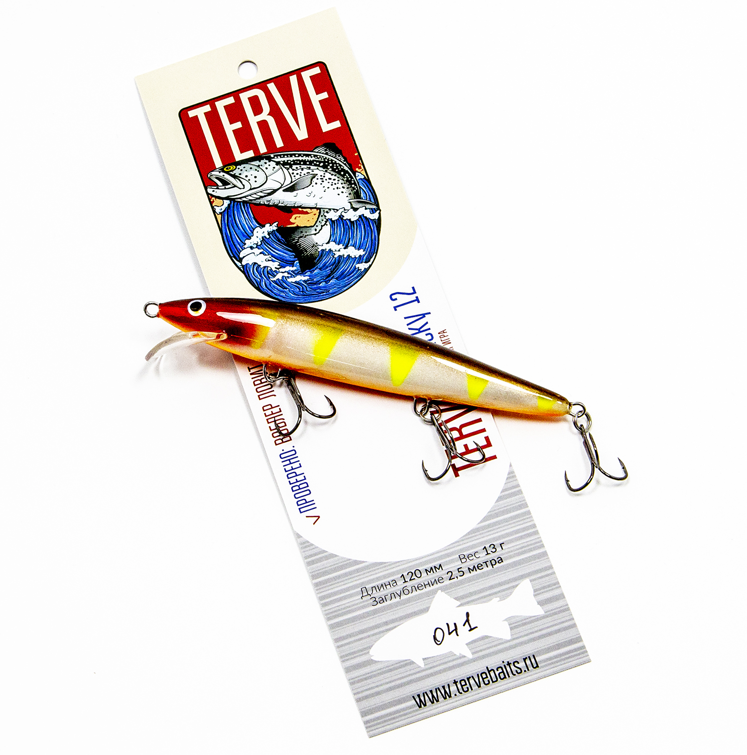 ТТХ воблера: длина 120 мм., вес – 13 грамм, заглубление 2,5 метра. Воблер плавающий.