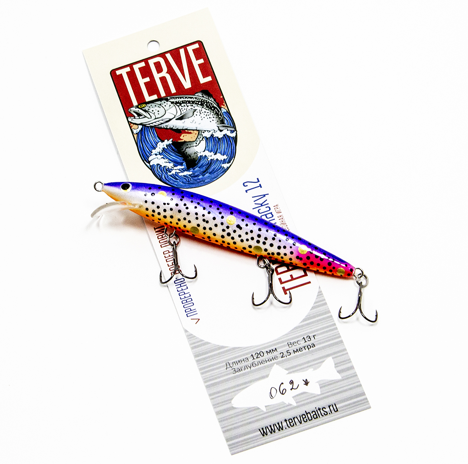В ходе практических испытаний была установлена высокая стабильность работы Terve Whacky на протяжении всего сезона открытой воды. Об универсальности этой приманки много говорит то, что воблер ещё на этапе предсерийных испытаний отлично ловил совершенно разных хищников на очень разных и отдалённых друг от друга водоёмах - щуку, судака, окуня, лосося, кумжу, палию. Очень быстро стало понятно, что Terve Whacky 12 срочно нужно запускать в серийное производство.