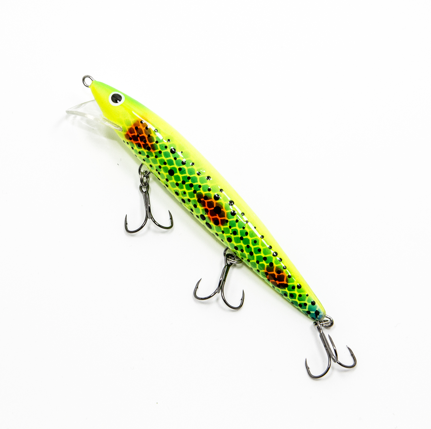 Это очень хорошая, рабочая реплика польского воблера Salmo Whacky 120F, который исчез с российского рынка.