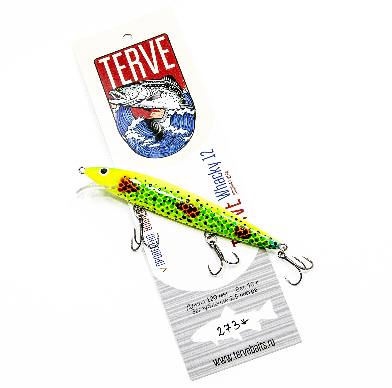 В ходе практических испытаний была установлена высокая стабильность работы Terve Whacky на протяжении всего сезона открытой воды. Об универсальности этой приманки много говорит то, что воблер ещё на этапе предсерийных испытаний отлично ловил совершенно разных хищников на очень разных и отдалённых друг от друга водоёмах - щуку, судака, окуня, лосося, кумжу, палию. Очень быстро стало понятно, что Terve Whacky 12 срочно нужно запускать в серийное производство.