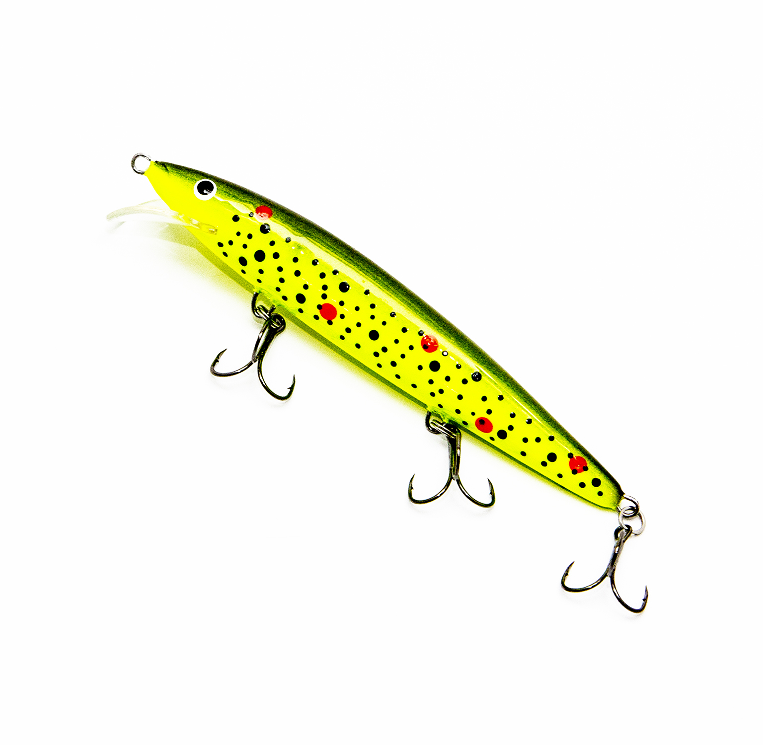 Это очень хорошая, рабочая реплика польского воблера Salmo Whacky 120F, который исчез с российского рынка.