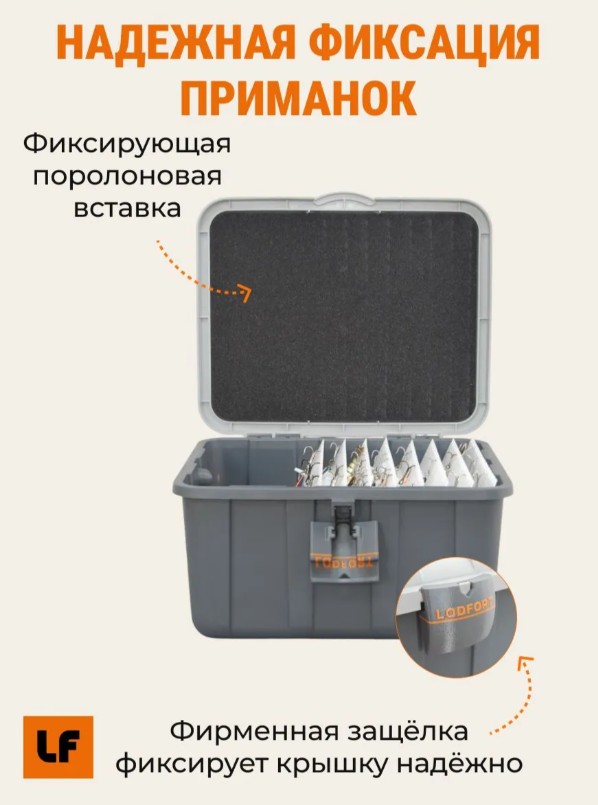 - Поролоновая вставка в крышке обеспечивает фиксацию приманок при переноске.